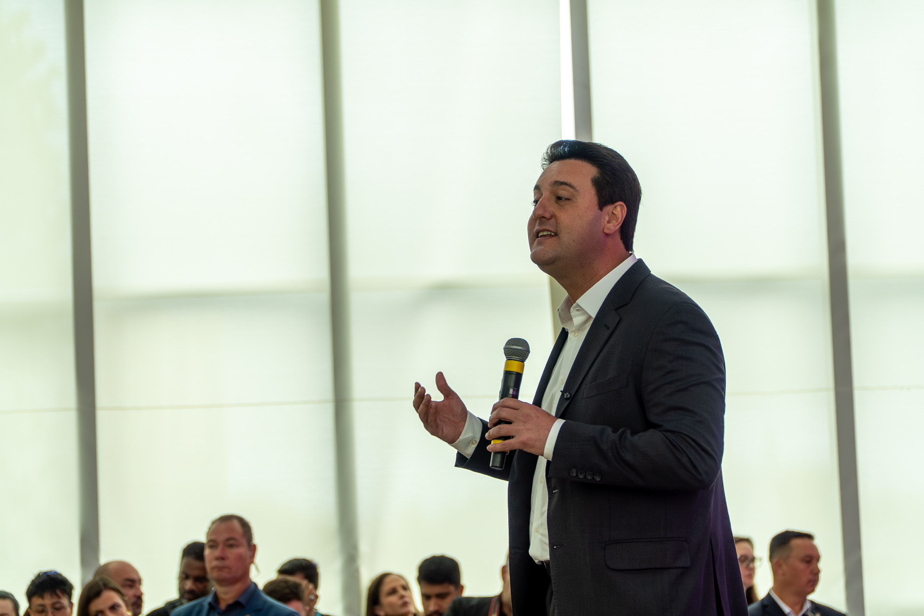O governador Carlos Massa Ratinho Junior participa nesta segunda-feira (24) do II Encontro Estadual de Gestores de Políticas do Cuidado, no Palácio Iguaçu. Neste ato, são entregues 40 ônibus que atenderão a política para idosos e 82 carros para política da mulher.