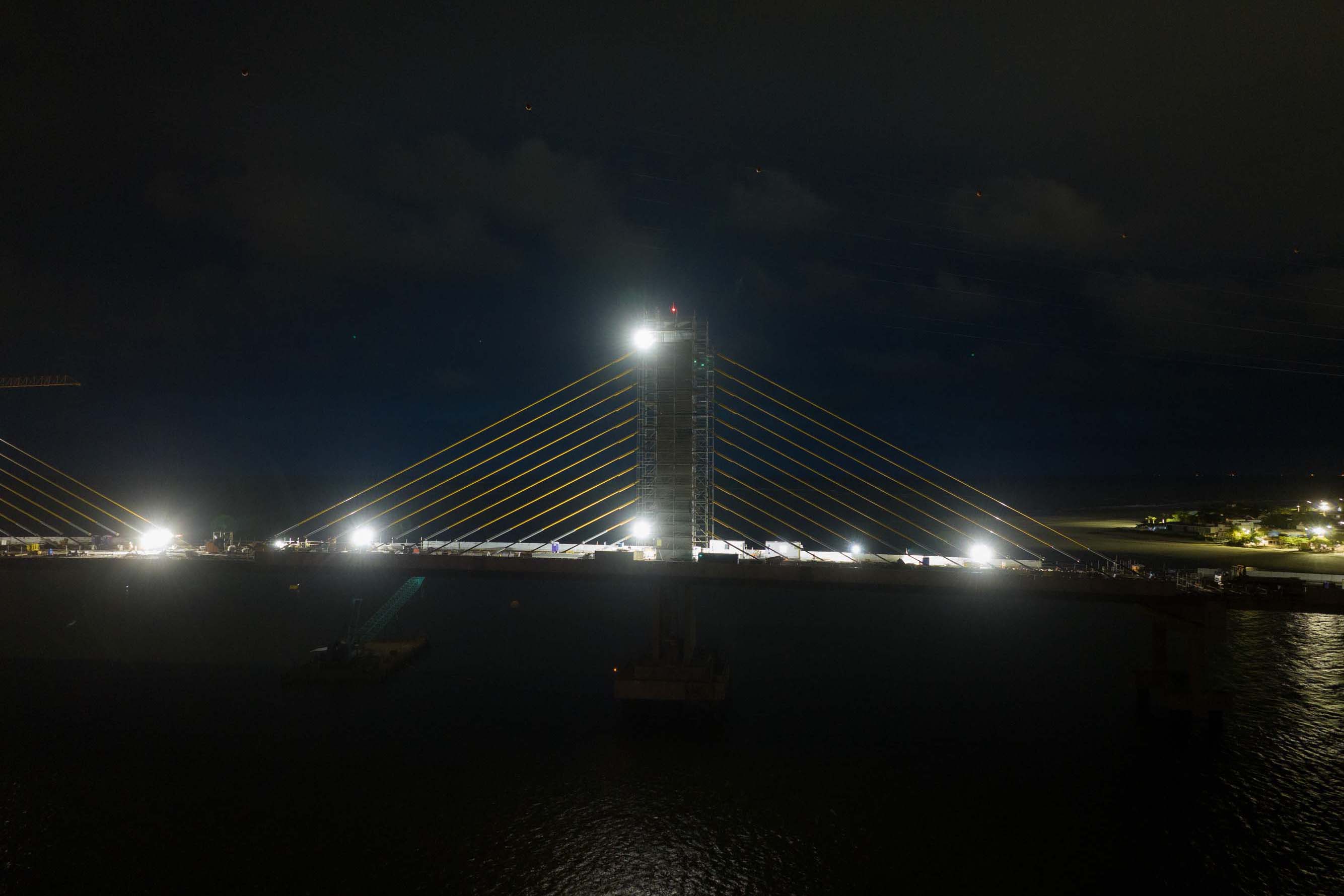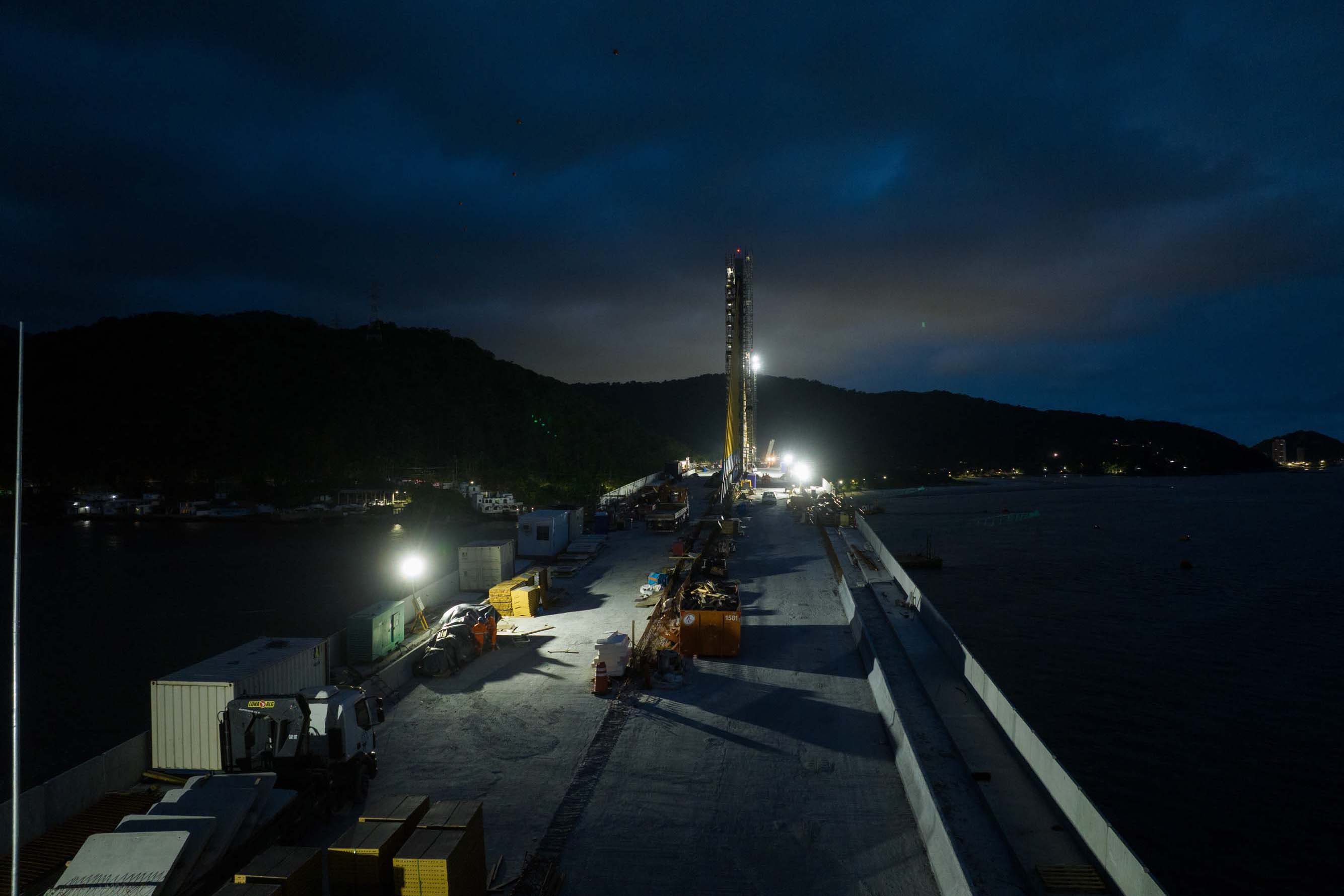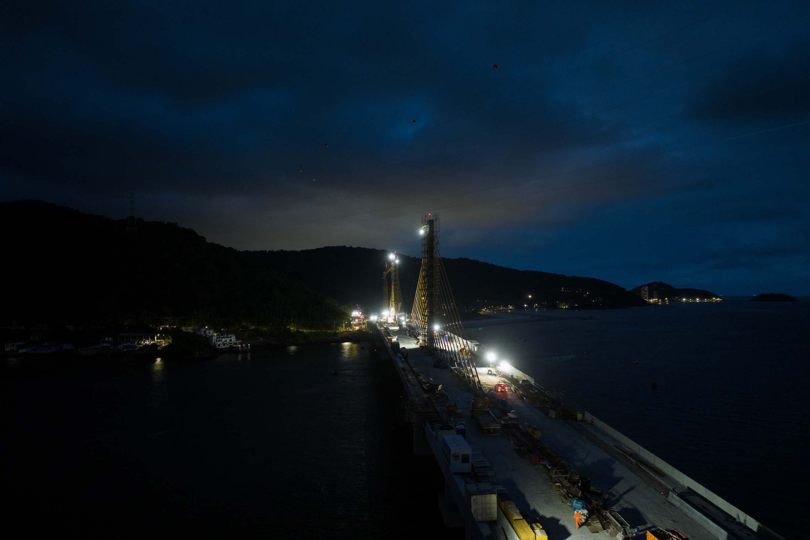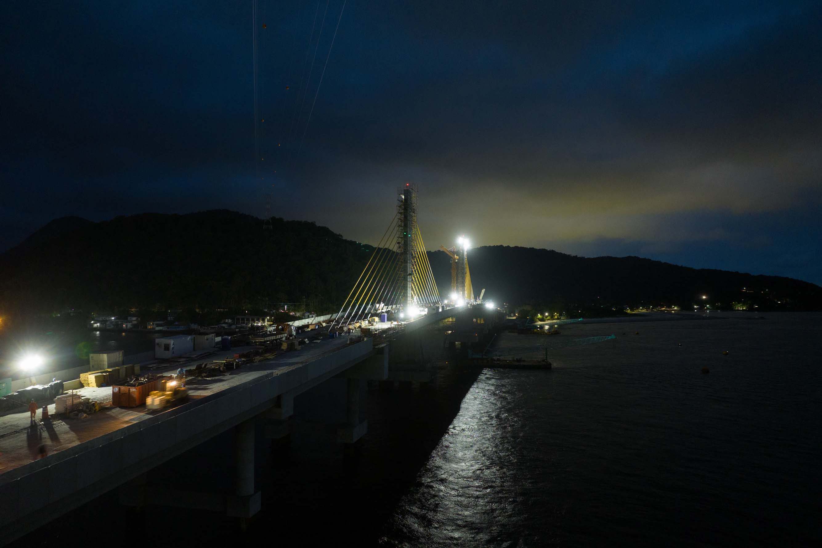 Em reta final, obras da Ponte de Guaratuba seguem inclusive no turno da noite