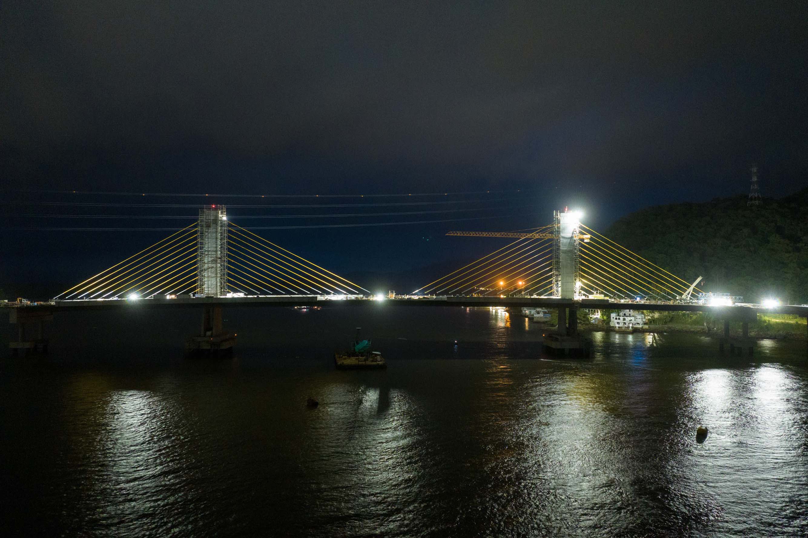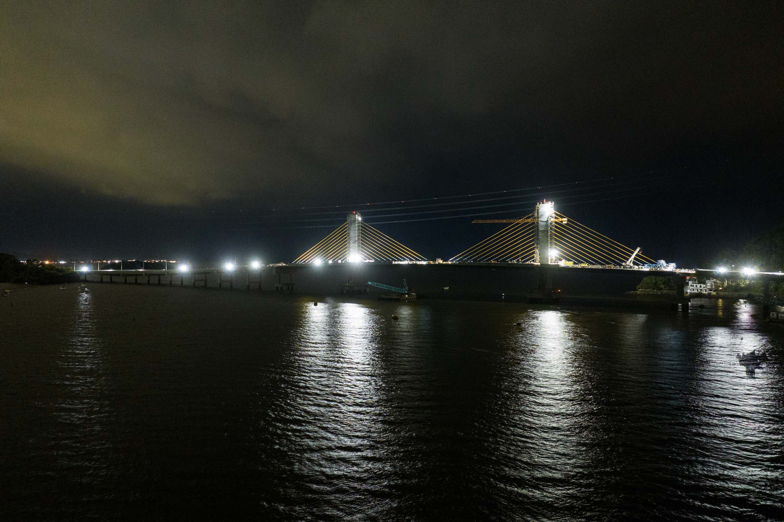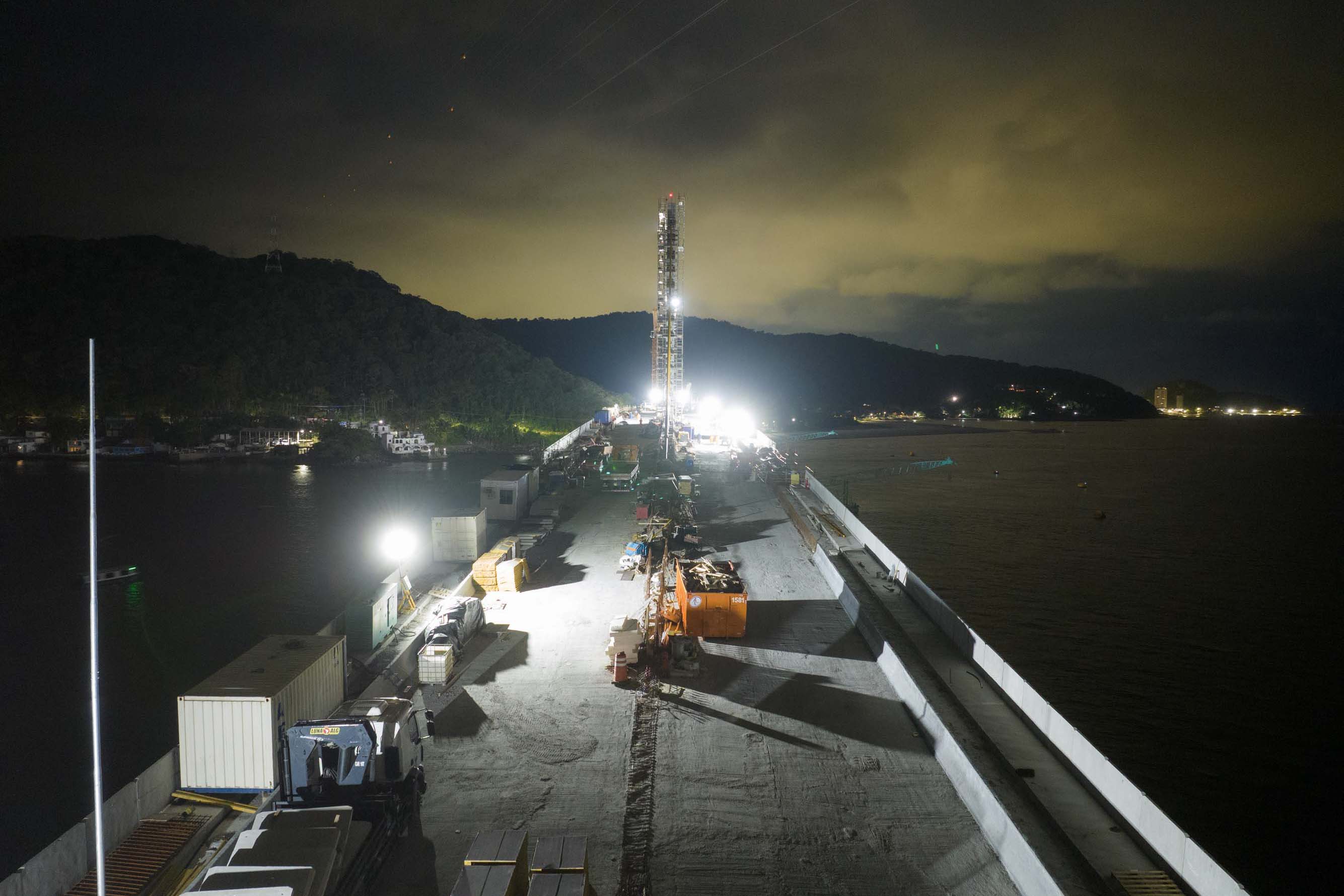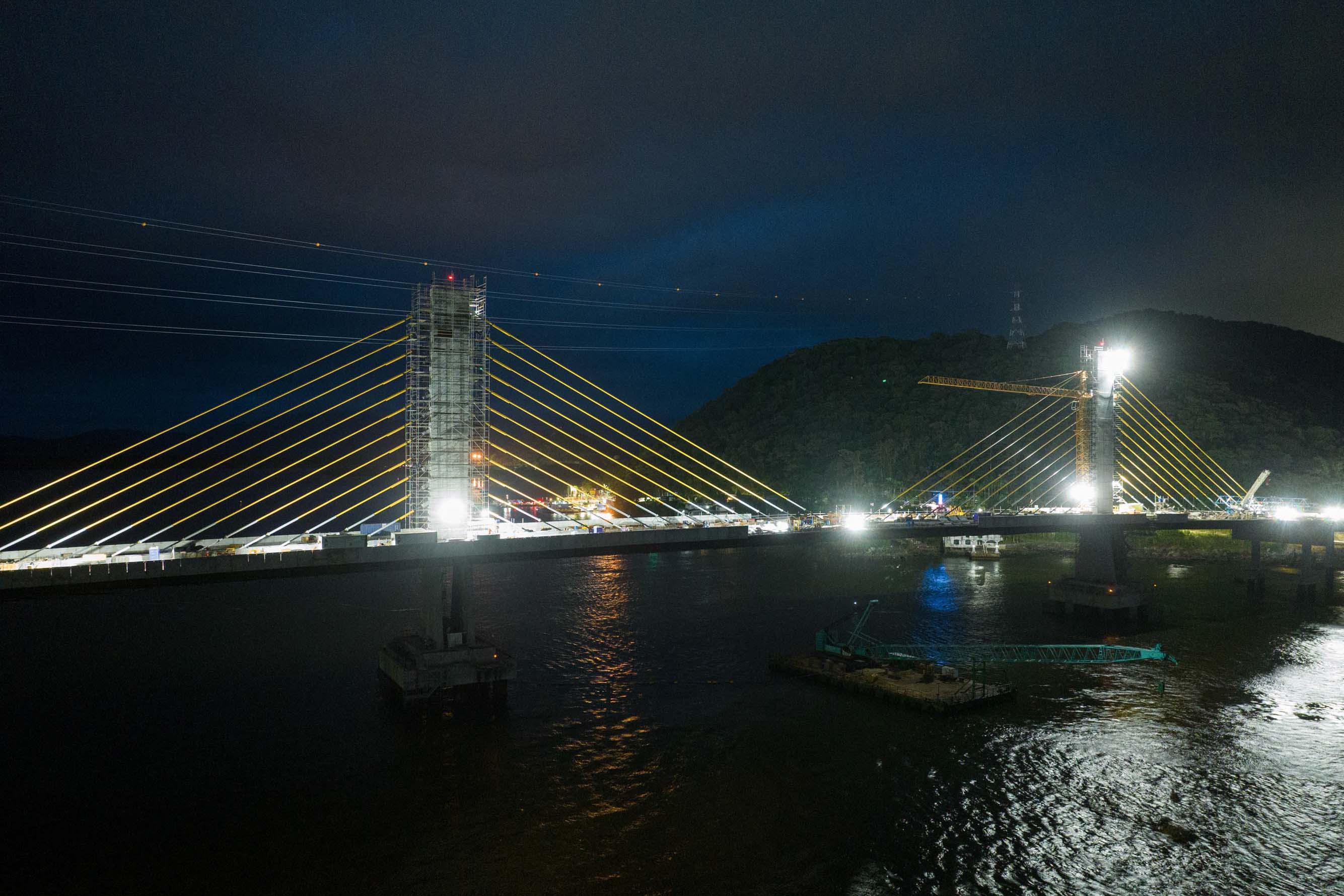 Em reta final, obras da Ponte de Guaratuba seguem inclusive no turno da noite