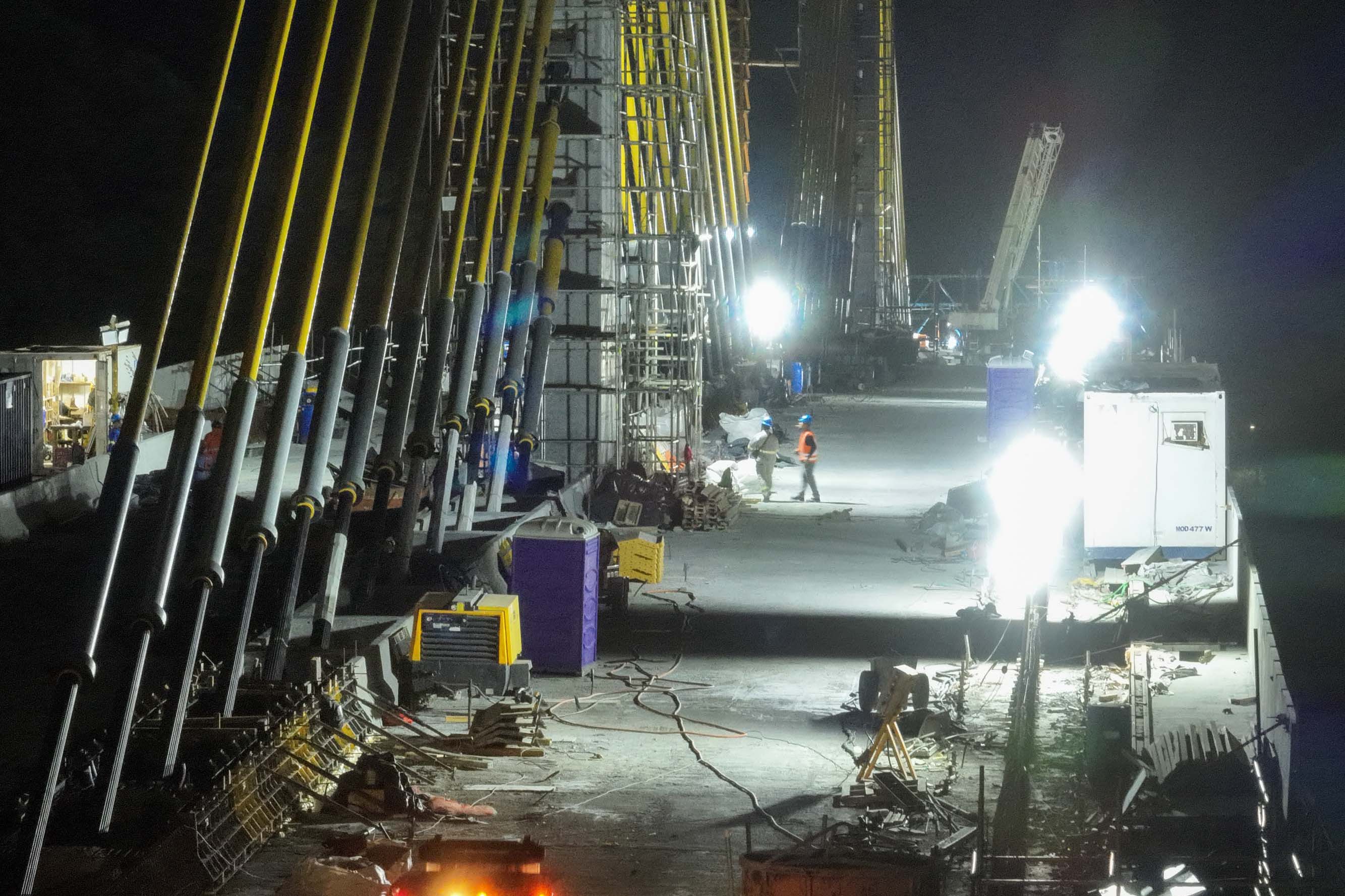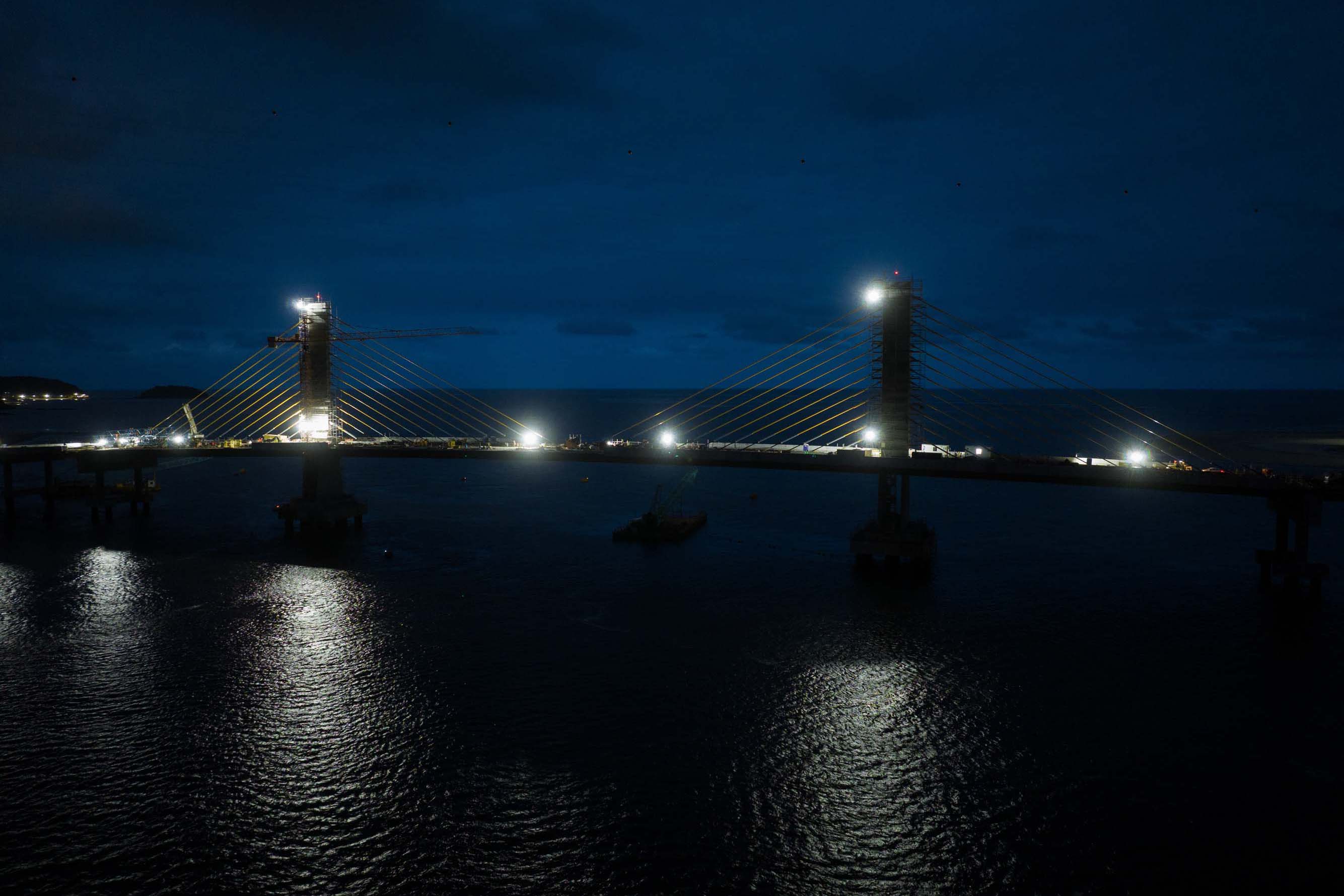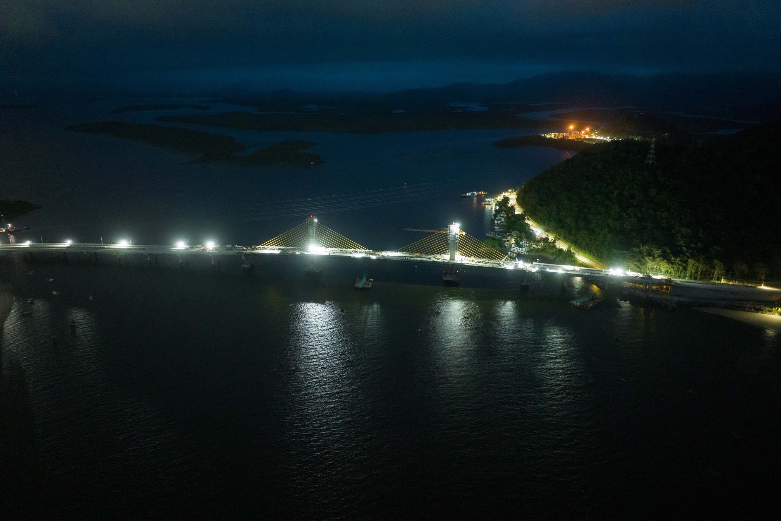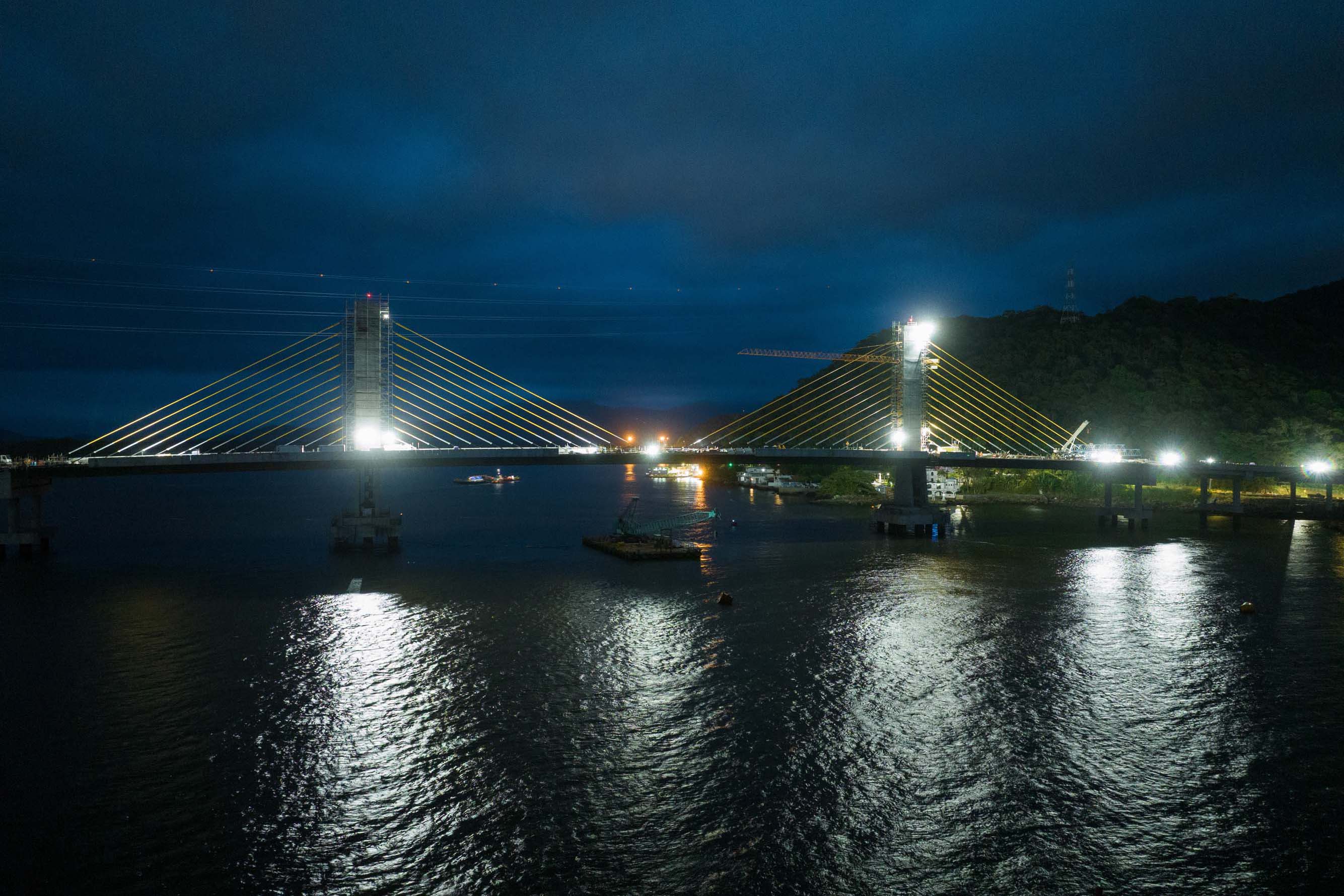 Em reta final, obras da Ponte de Guaratuba seguem inclusive no turno da noite