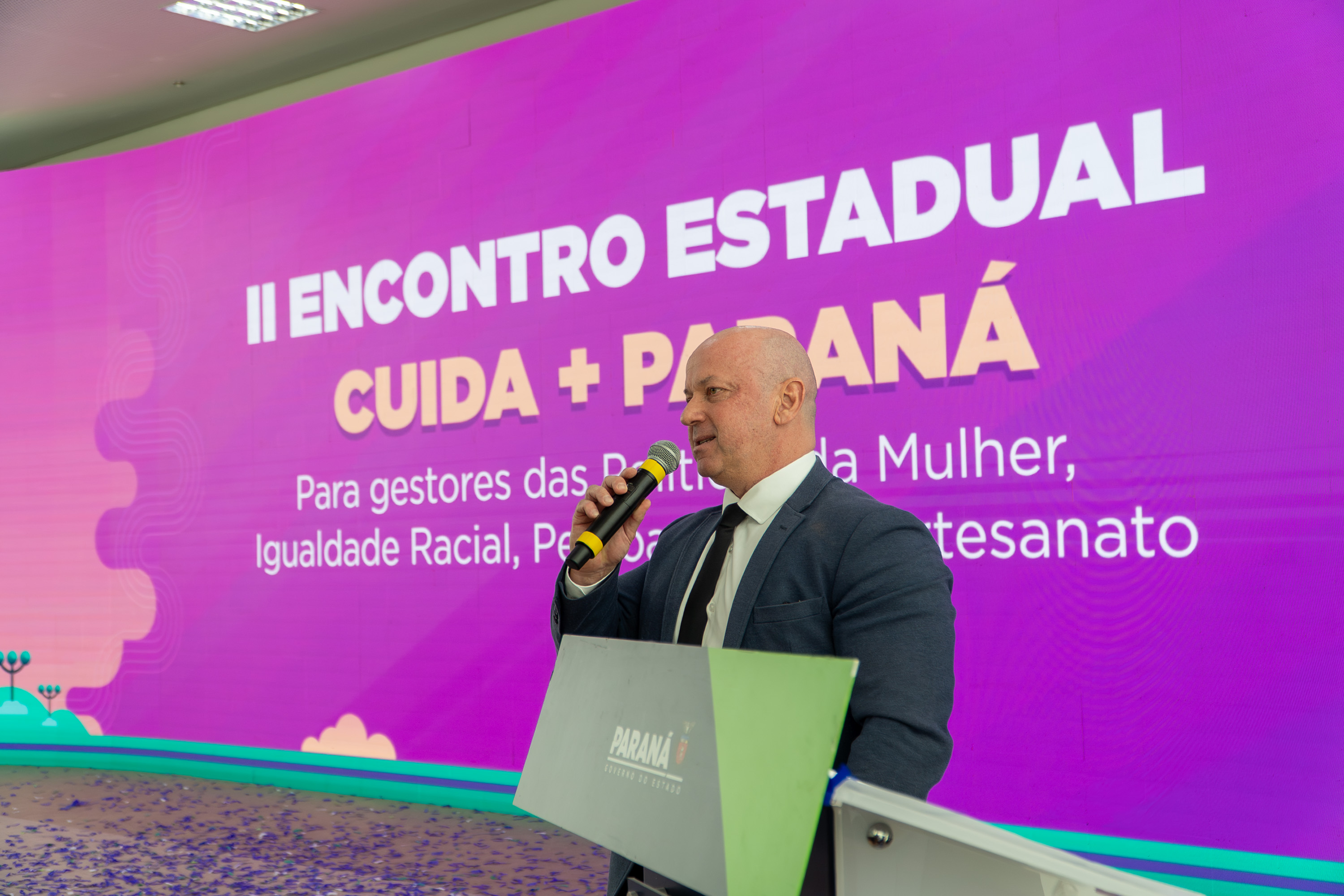 O governador Carlos Massa Ratinho Junior participa nesta segunda-feira (24) do II Encontro Estadual de Gestores de Políticas do Cuidado, no Palácio Iguaçu. Na foto, diretora de Políticas Públicas para a Pessoa Idosa, Larissa Marsolik.