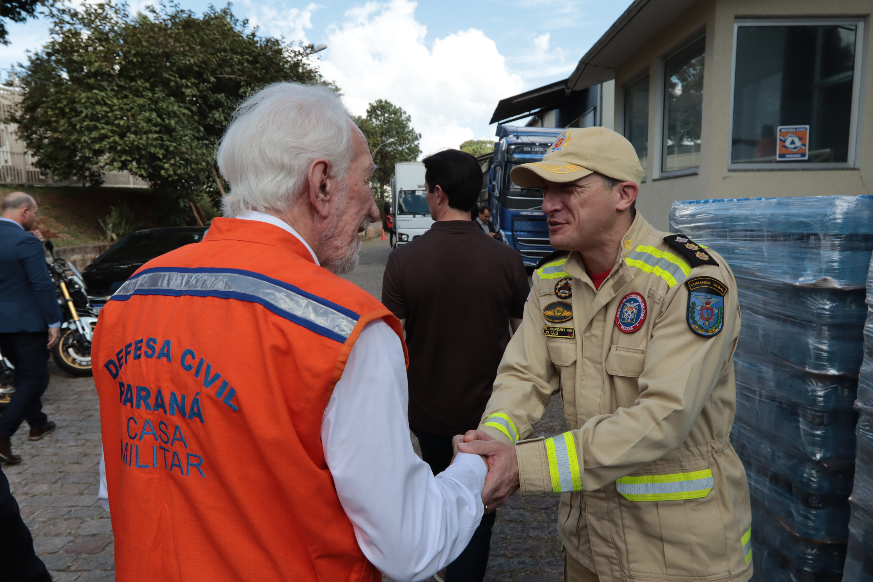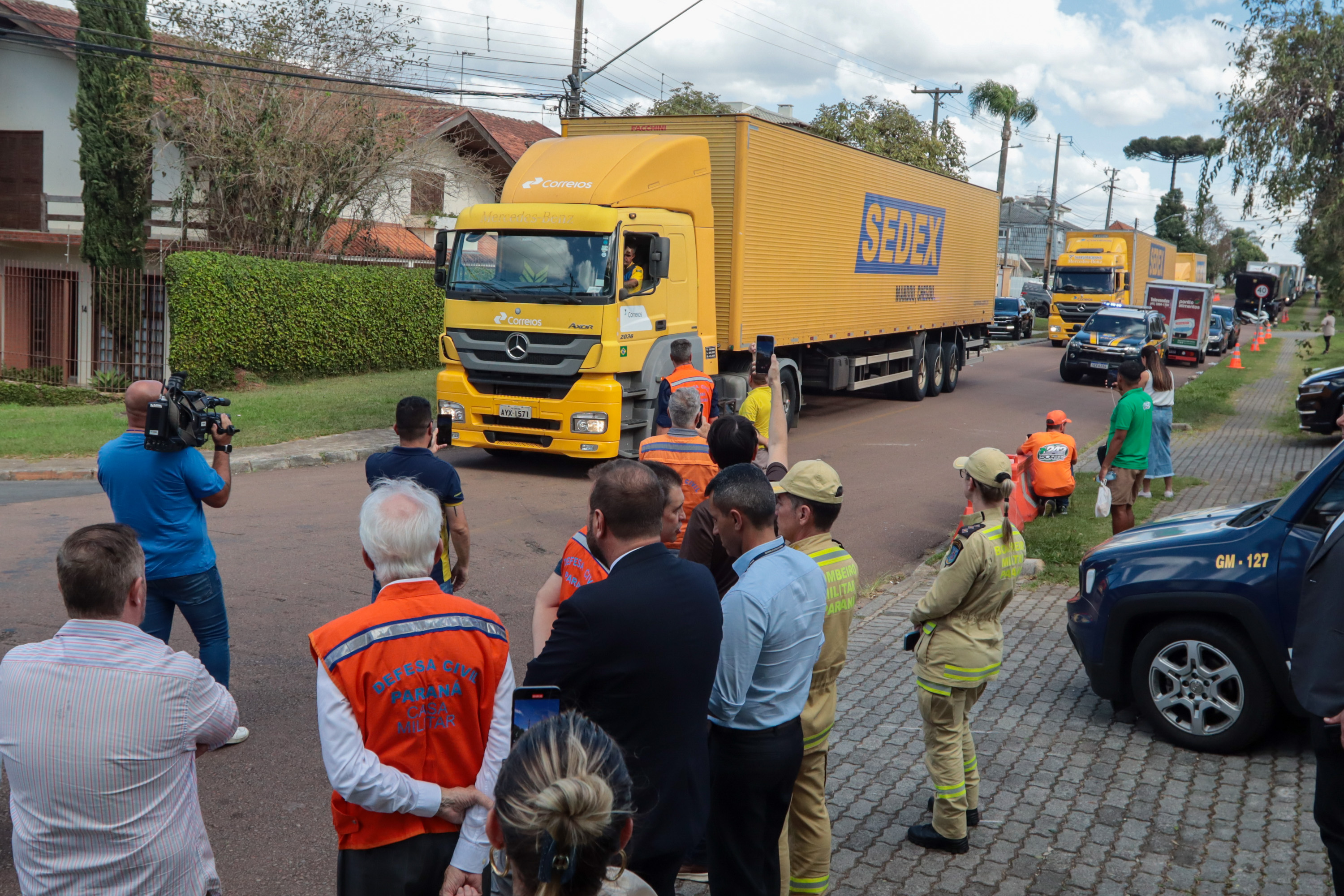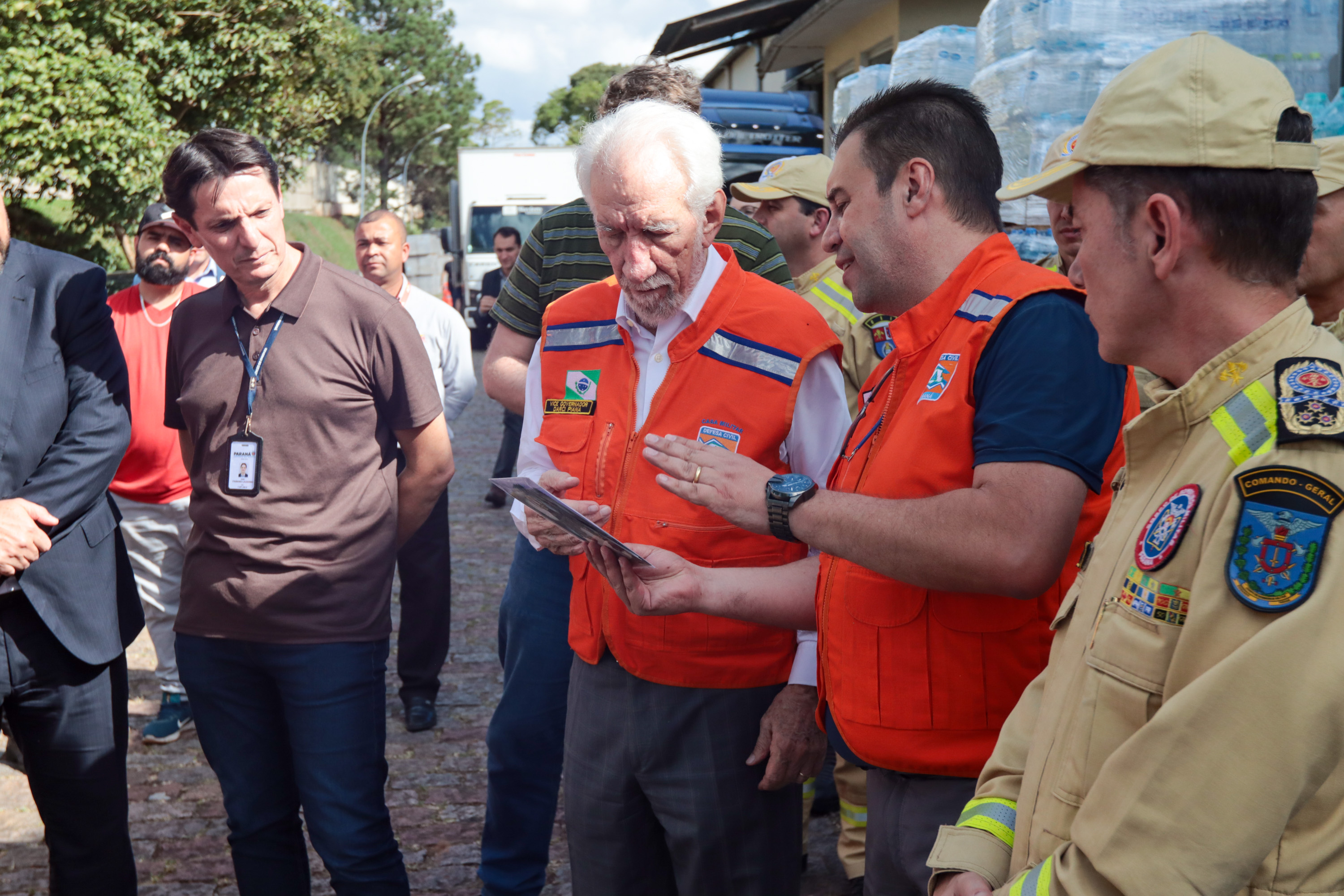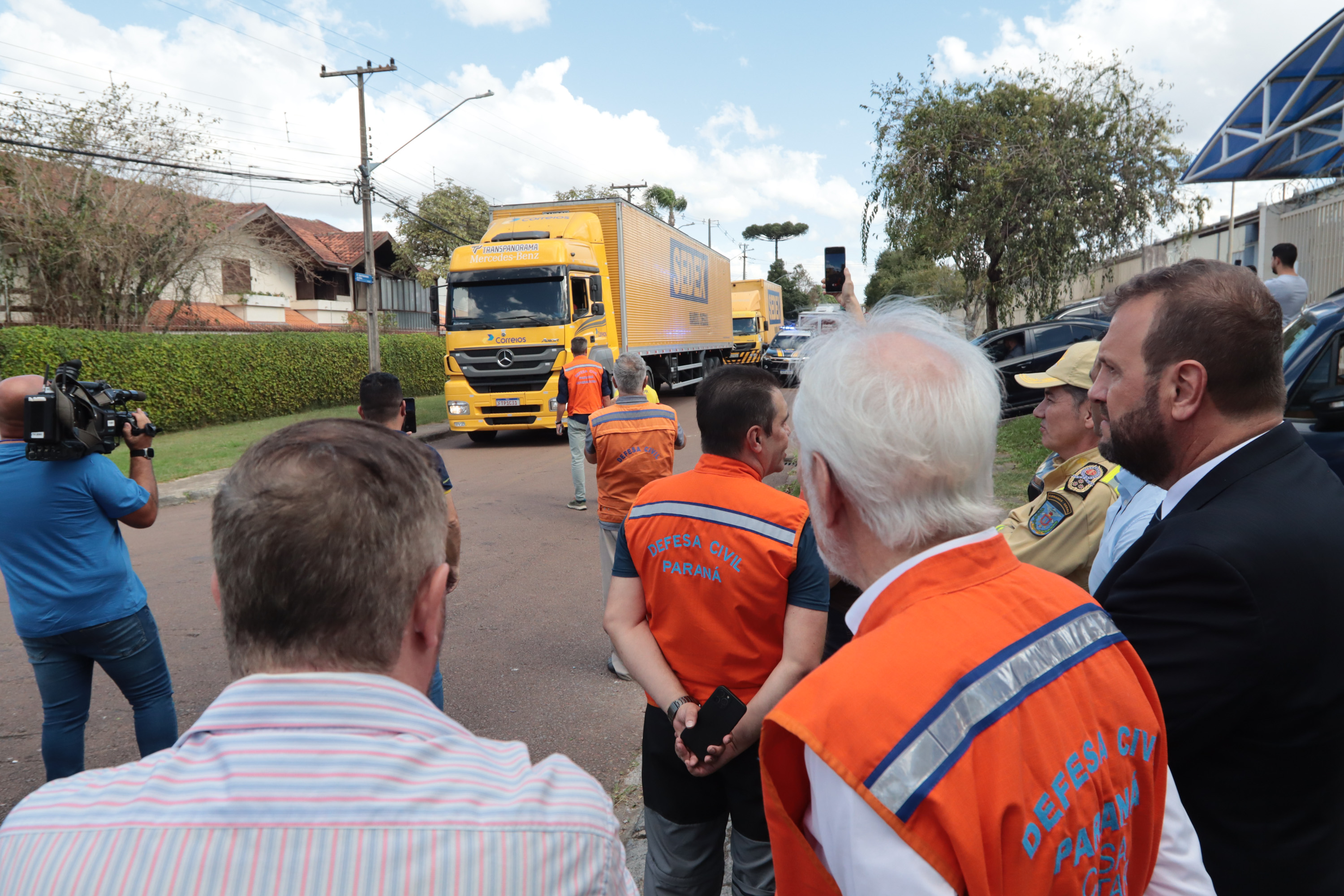 Governador em exercício Darci Piana acompanha a saída dos caminhões que levam as doações para o Rio Grande do Sul.