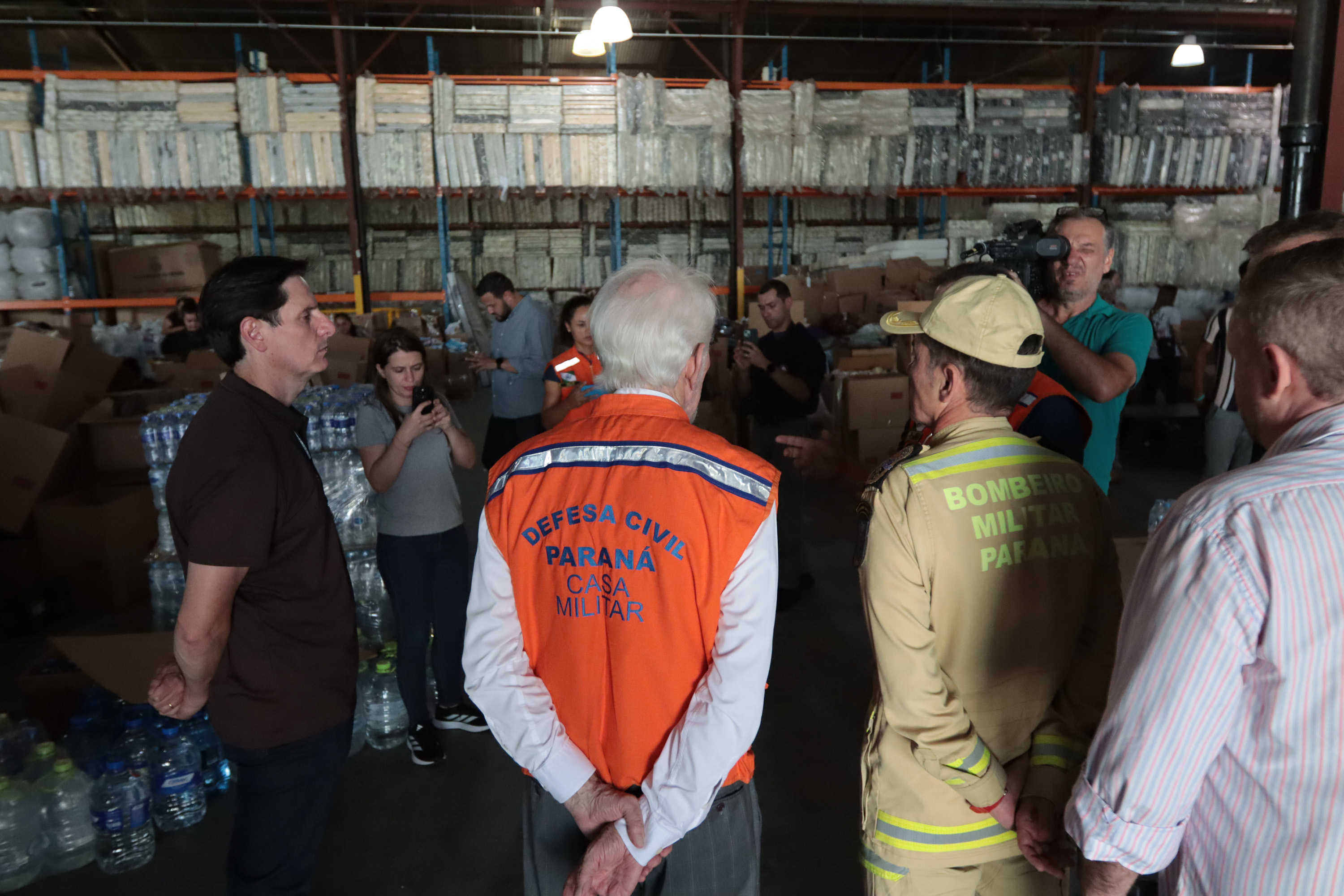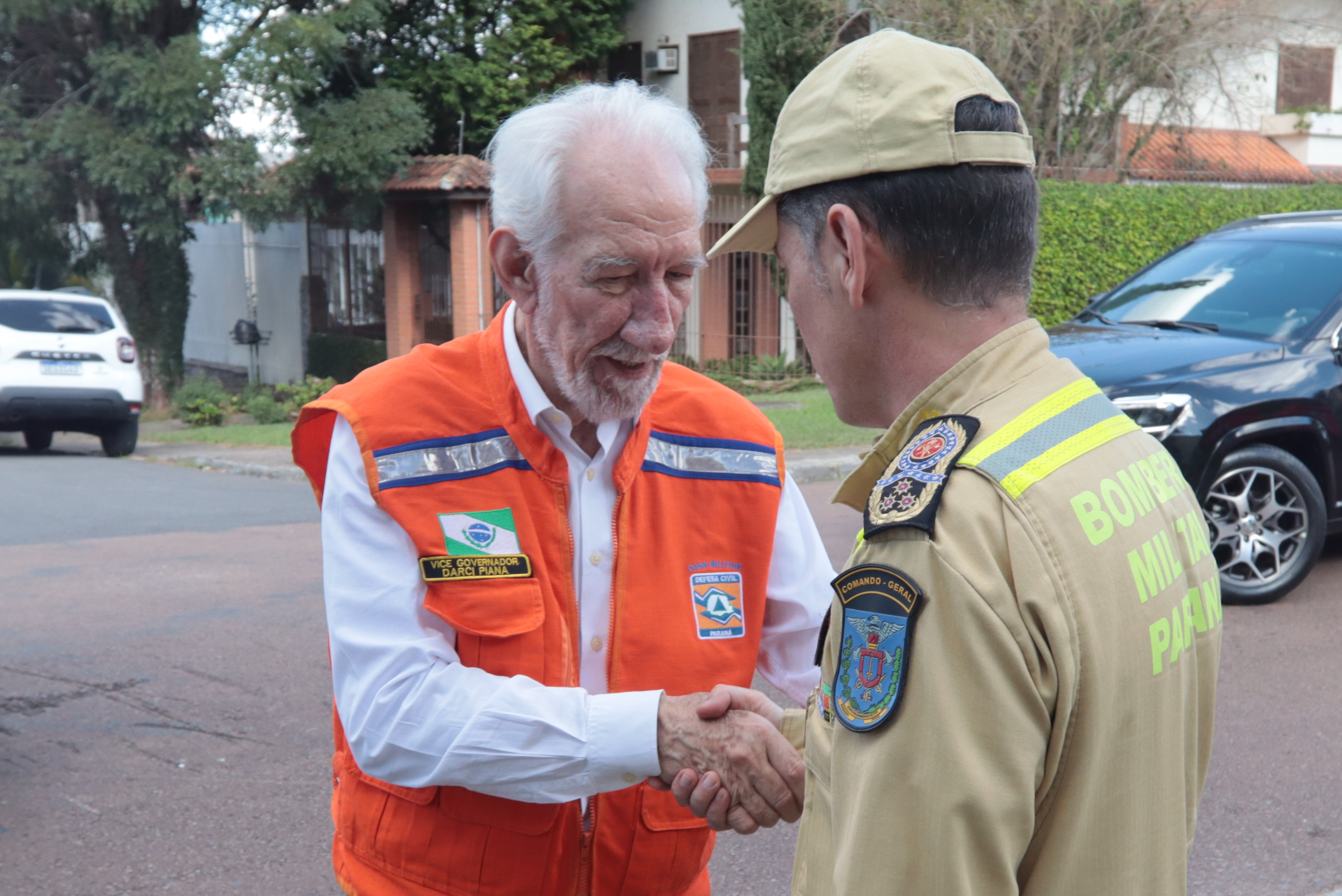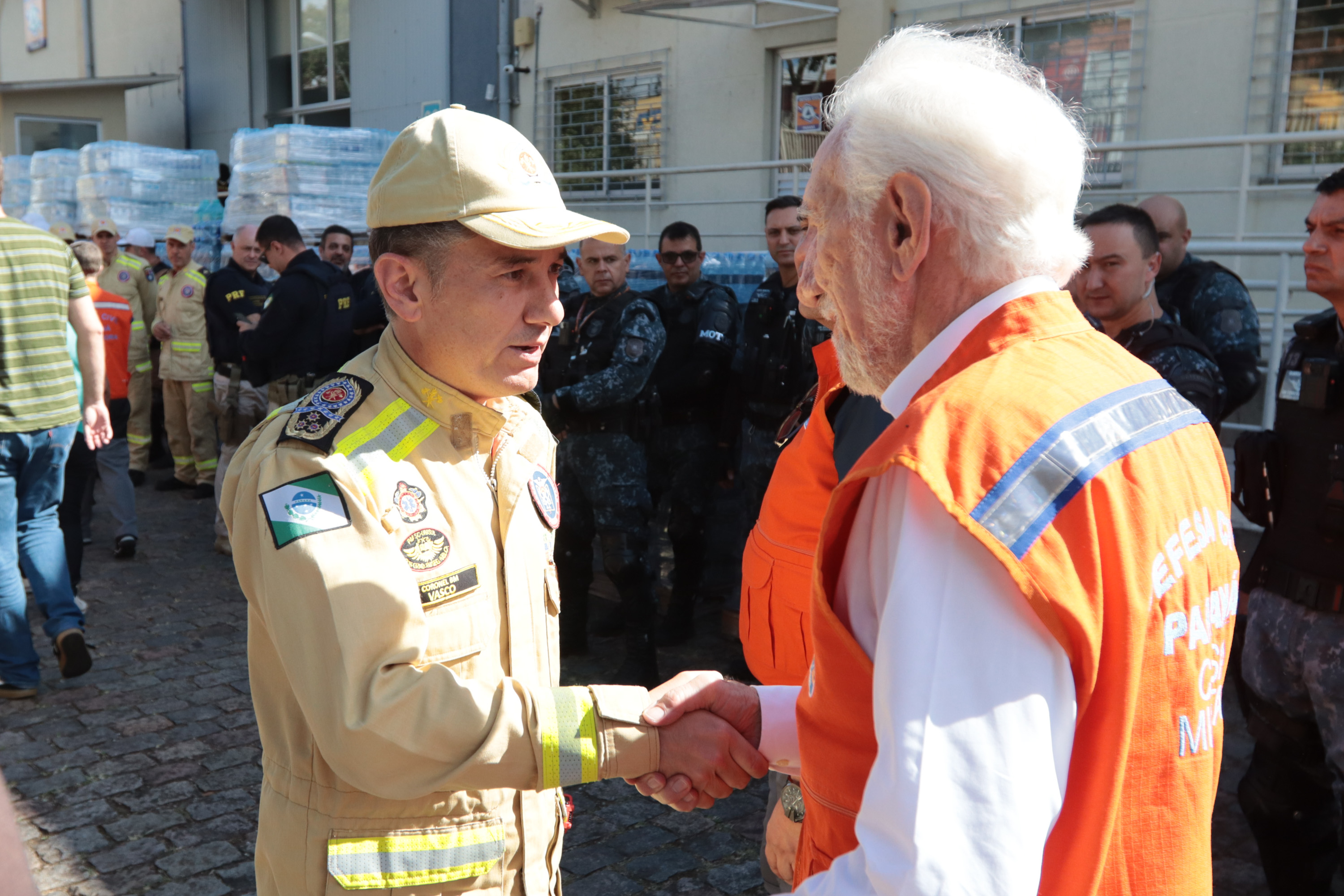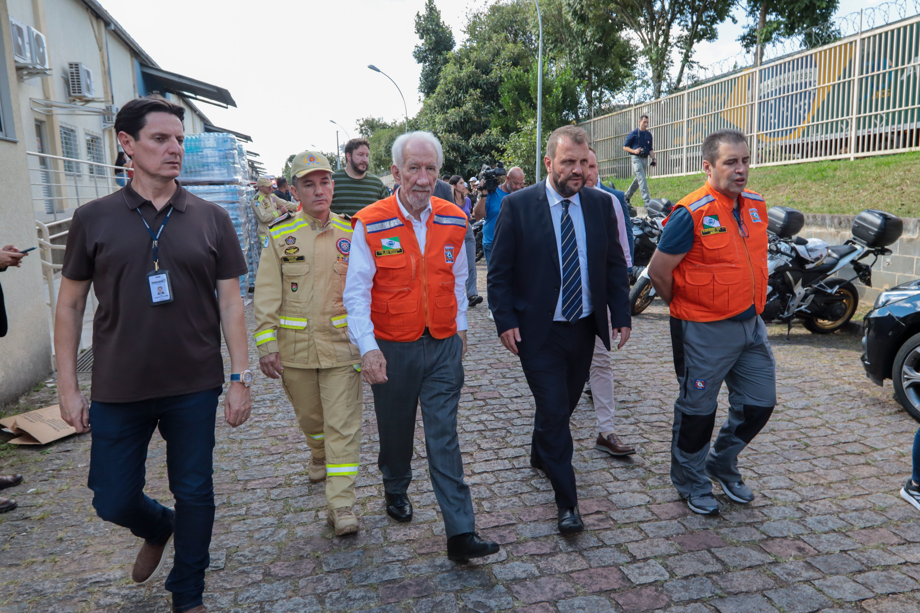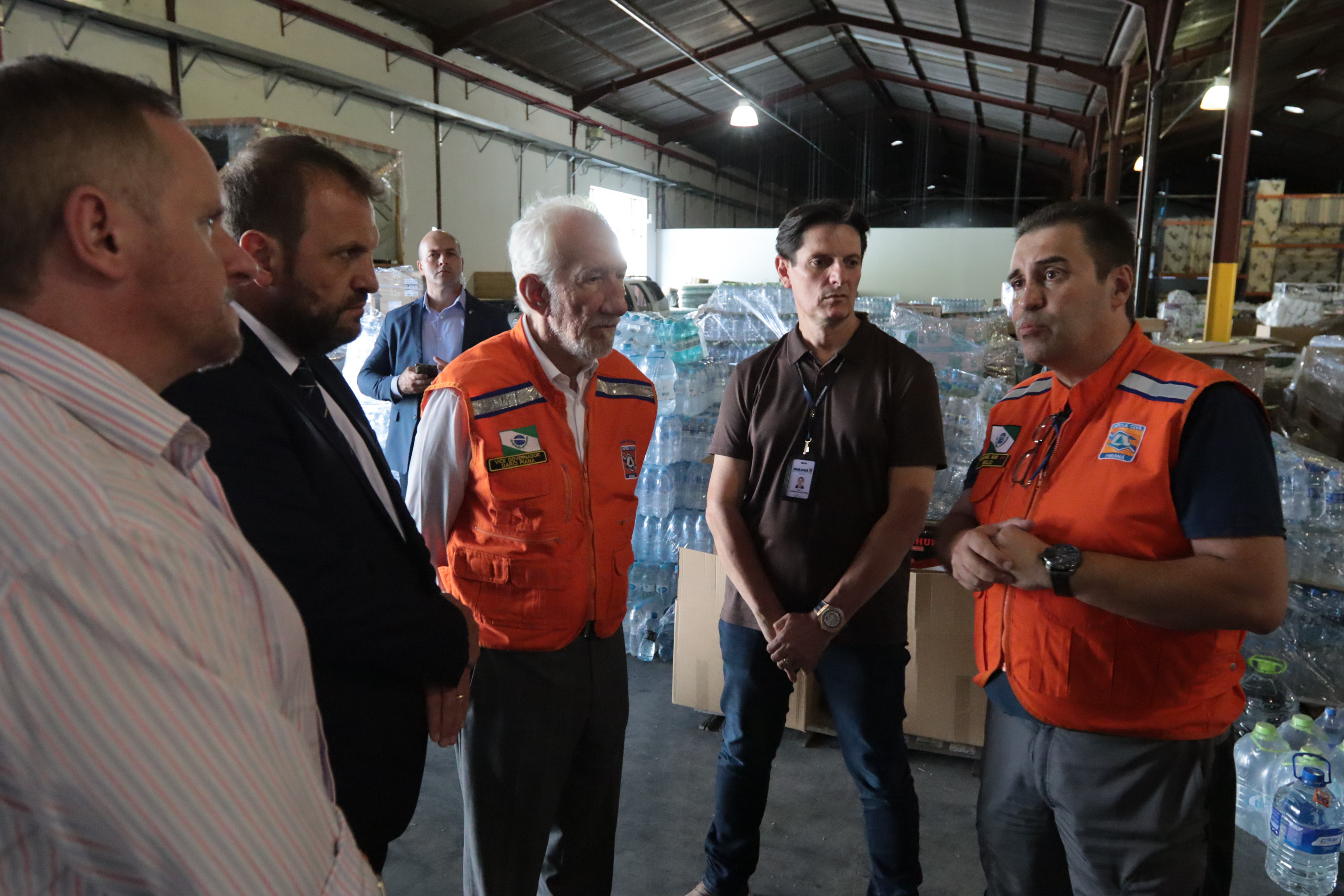 Governador em exercício Darci Piana acompanha a saída dos caminhões que levam as doações para o Rio Grande do Sul.