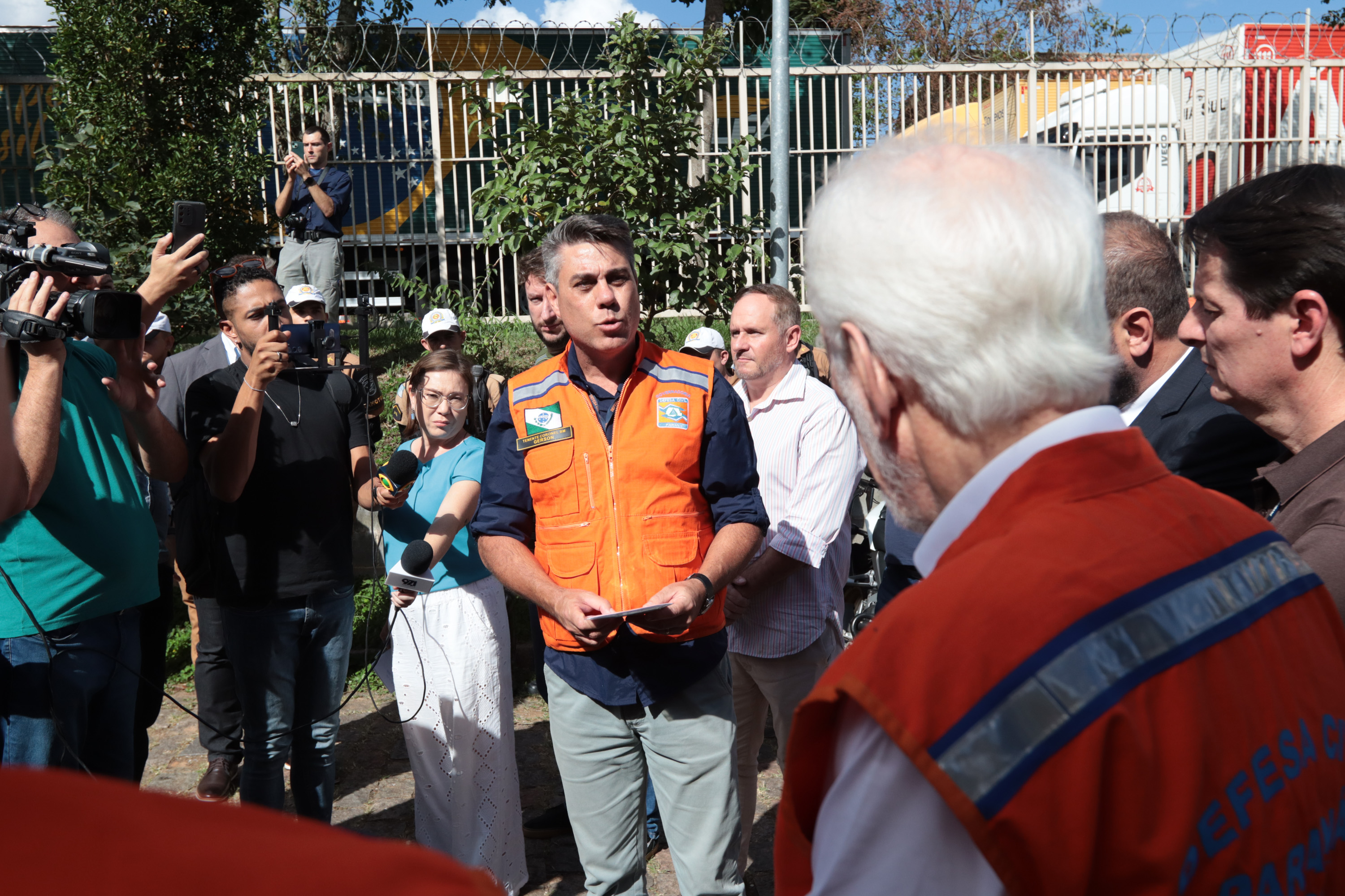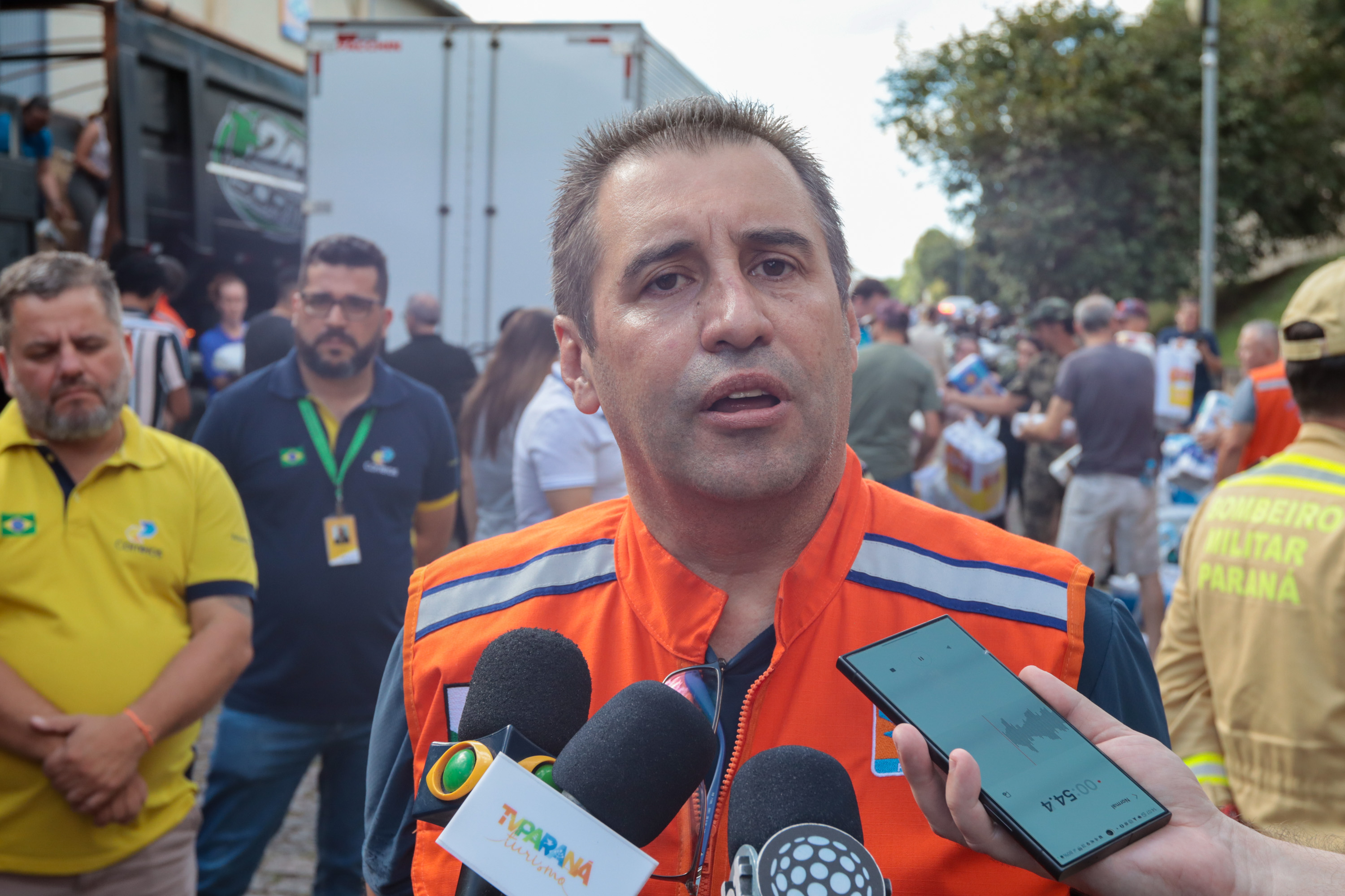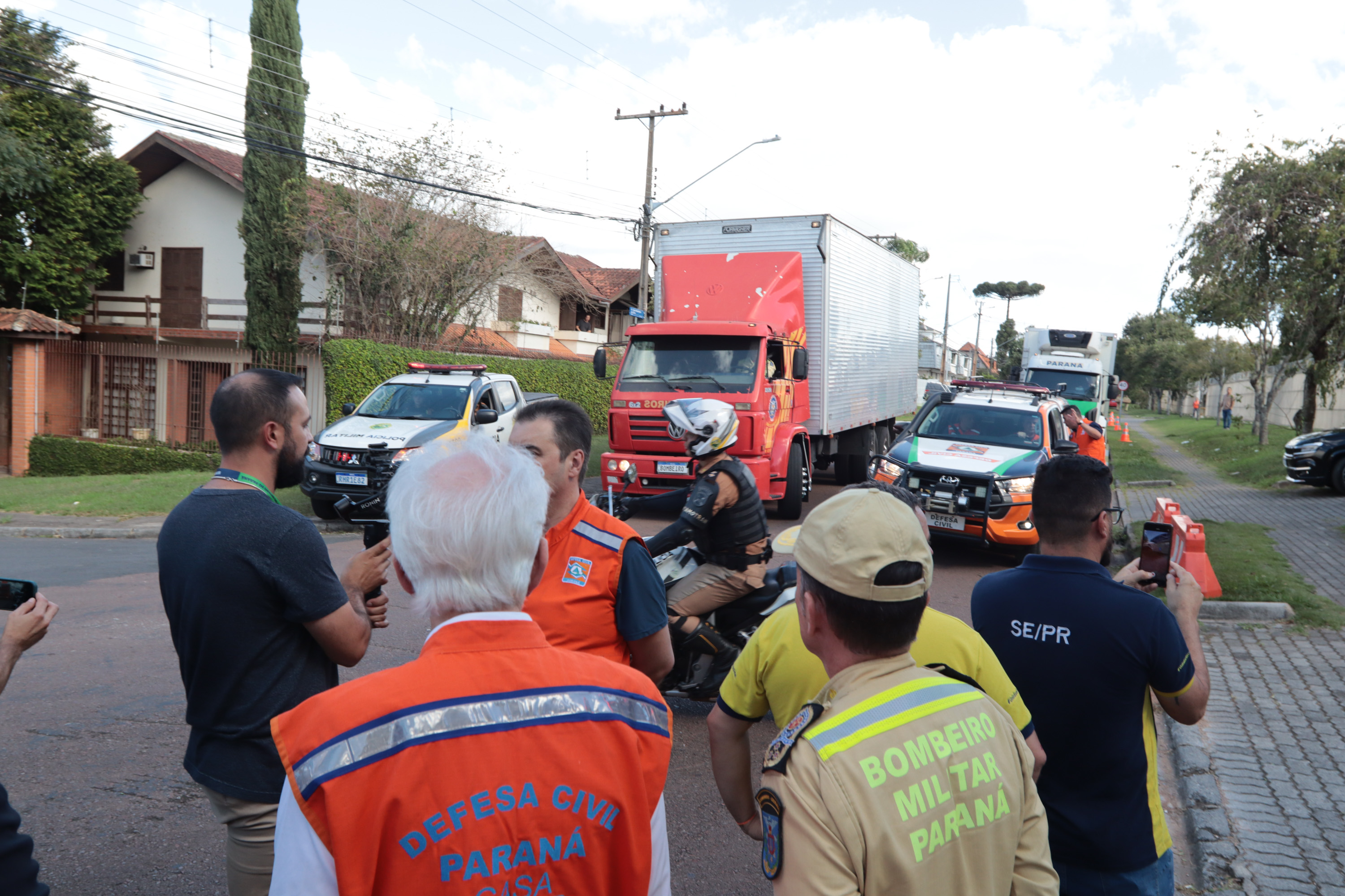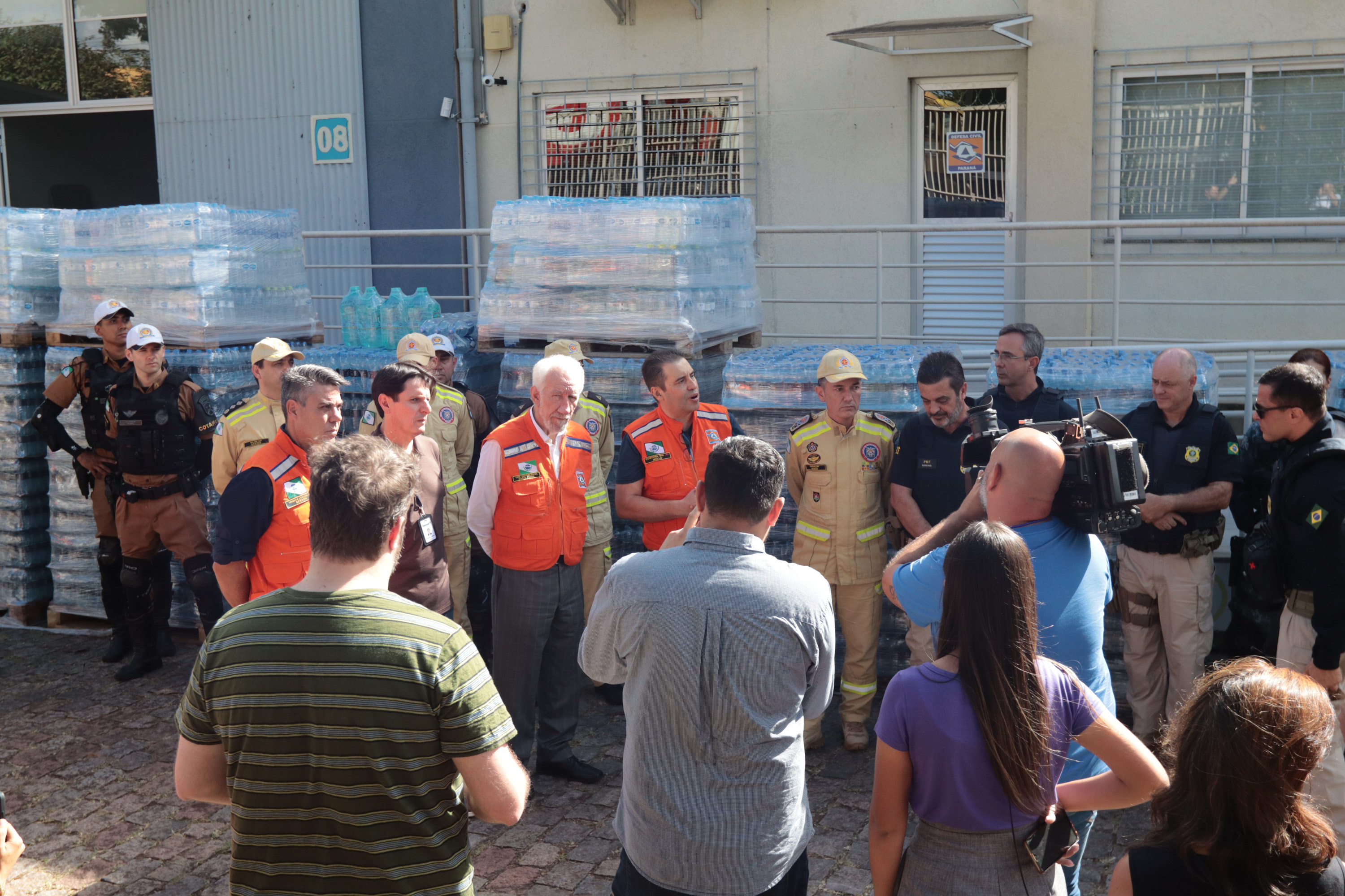 Governador em exercício Darci Piana acompanha a saída dos caminhões que levam as doações para o Rio Grande do Sul.