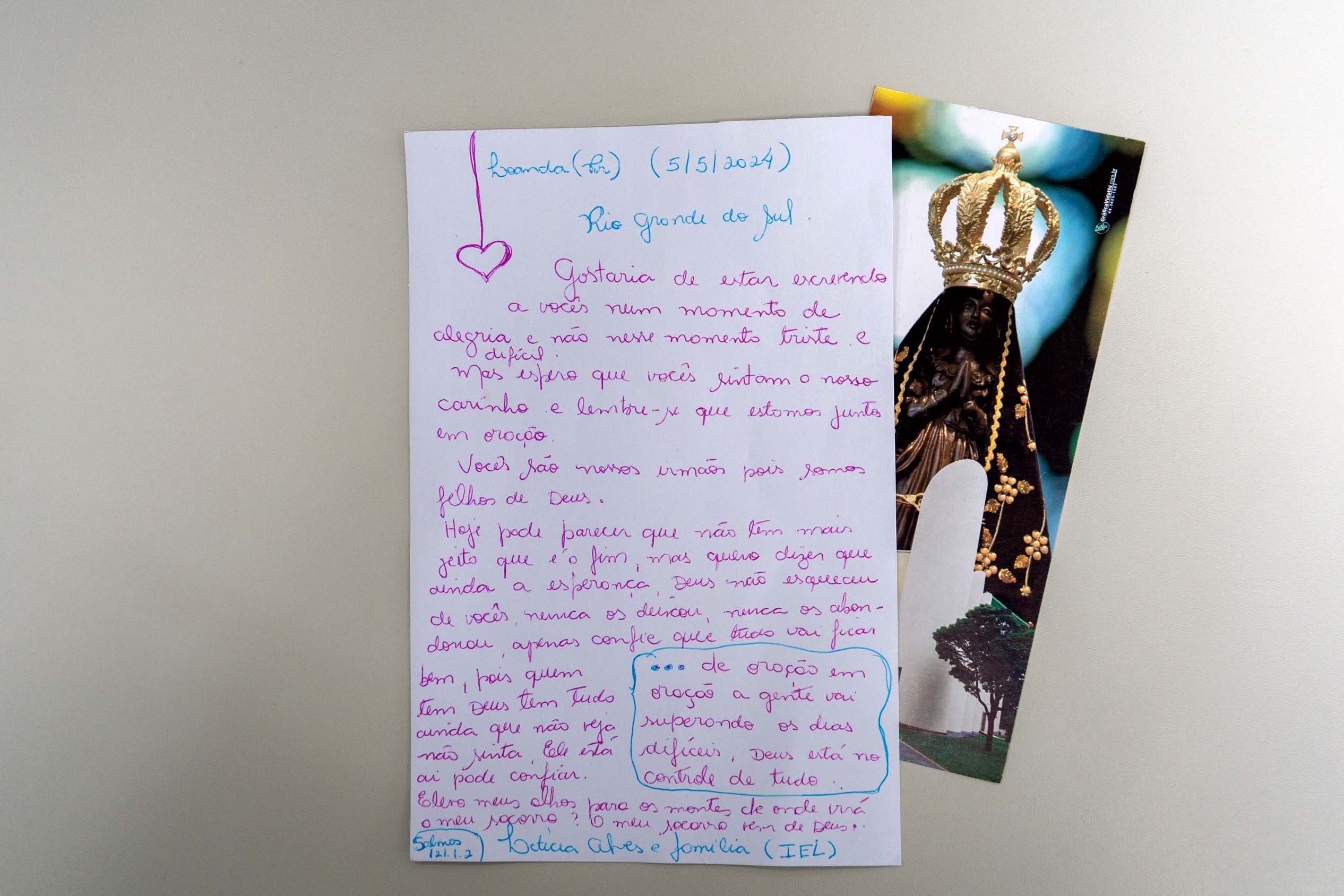 Carta enviada por uma moradora de Loanda, no Noroeste do Paraná, em apoio às pessoas que estão trabalhando nos resgates.