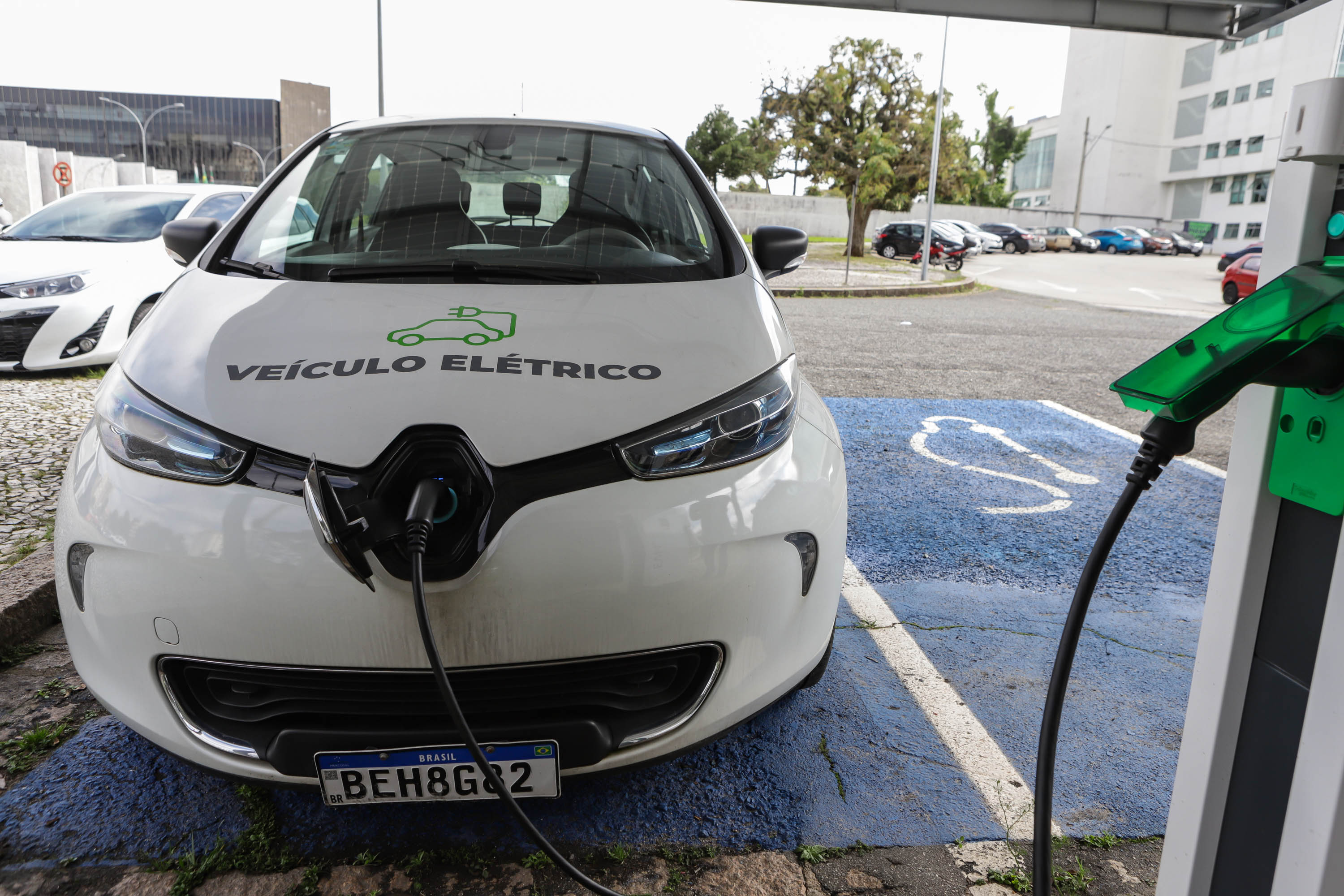 Venda de carros elétricos cresce 123% no primeiro trimestre de 2024 no Paraná - Na foto, carregamento de carro elétrico no Palácio Iguaçu