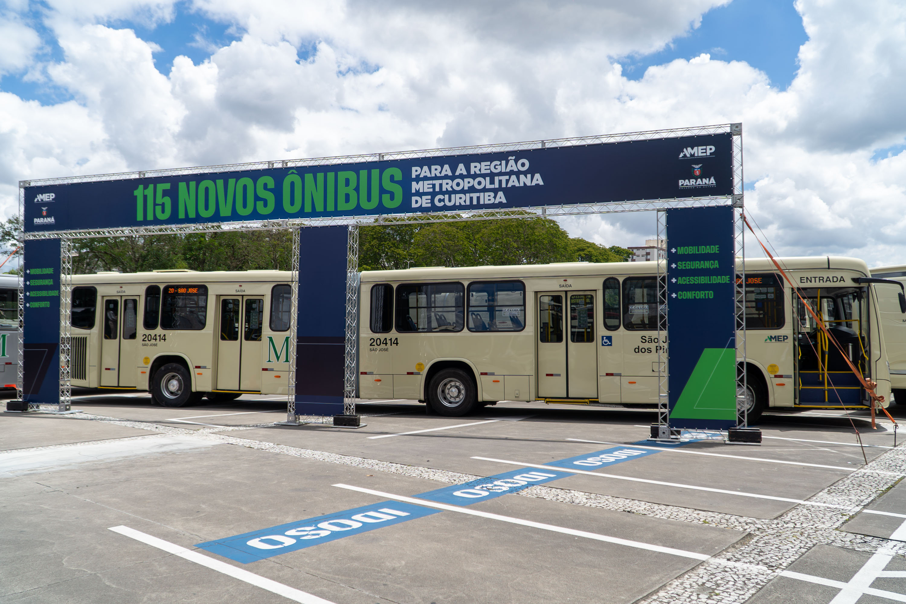 O transporte metropolitano da Grande Curitiba ganhou reforço nesta terça-feira (25) com a entrega de 115 ônibus zero quilômetro. A nova frota vai beneficiar seis municípios: Almirante Tamandaré, Pinhais, Fazenda Rio Grande, São José dos Pinhais, Colombo e Bocaiúva do Sul.