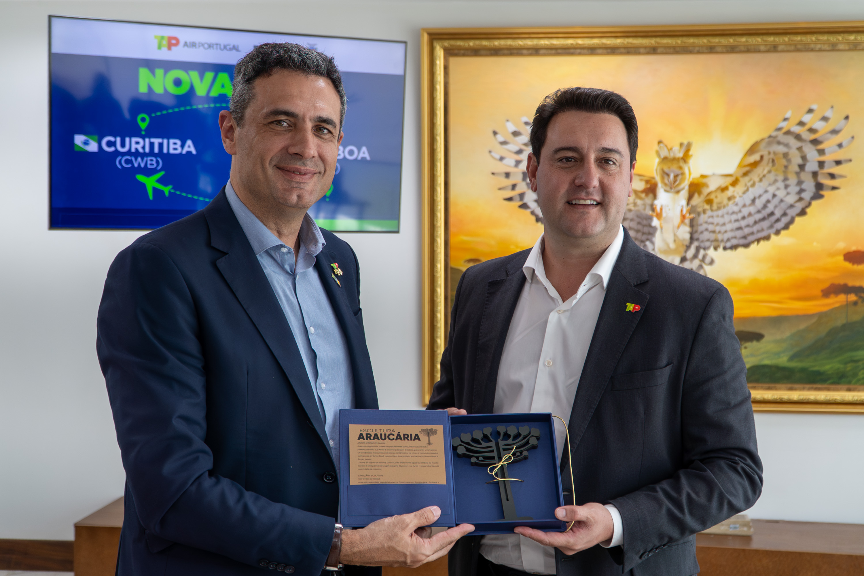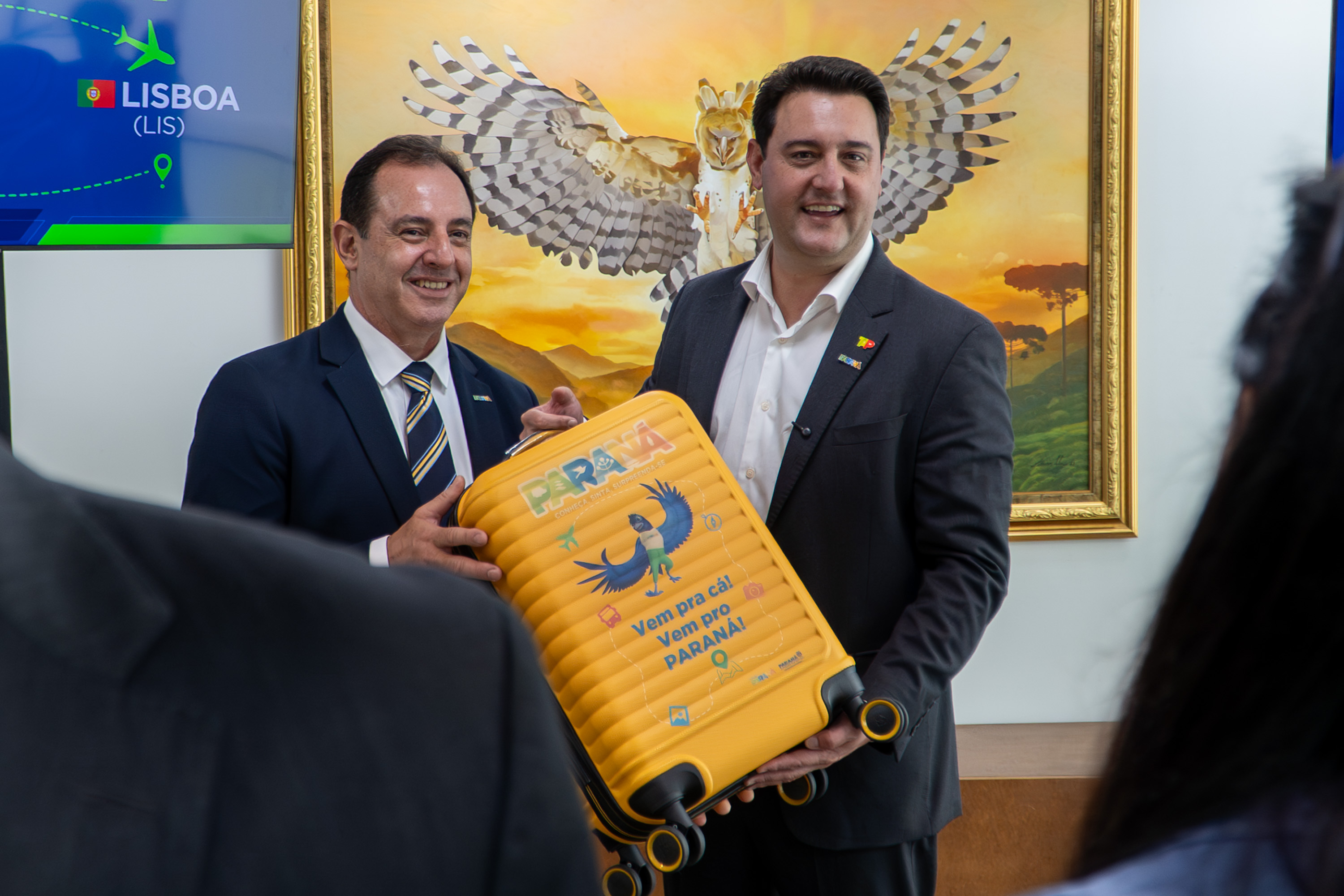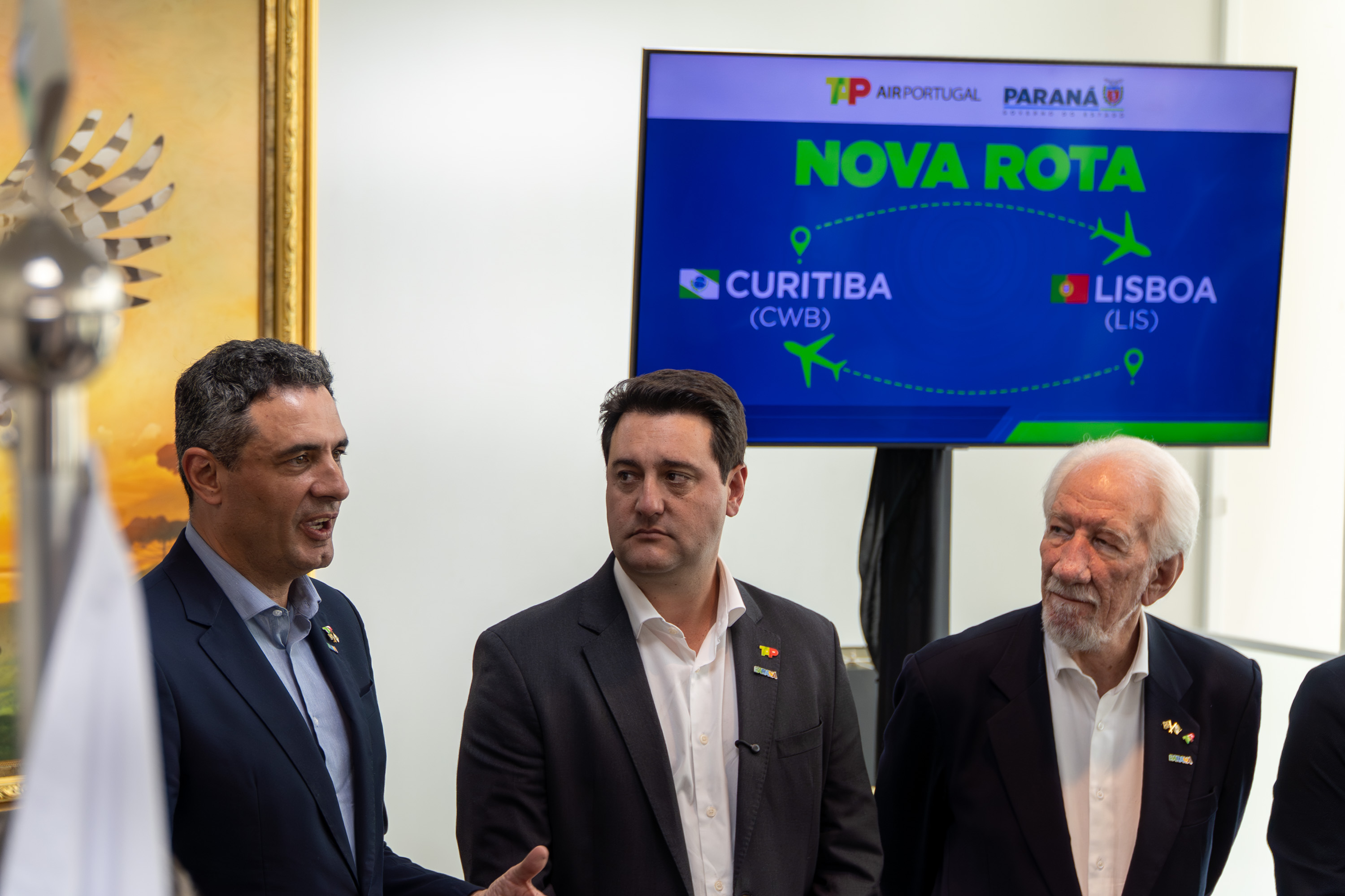 O governador Carlos Massa Ratinho Junior e diretores da TAP Air Portugal anunciaram nesta segunda-feira (3) a criação da rota. A empresa vai iniciar em 2 de julho de 2026 os voos entre a região de Curitiba e Lisboa, com três voos por semana saindo do Aeroporto Internacional Afonso Pena, com início das vendas de passagens em 11 de novembro.