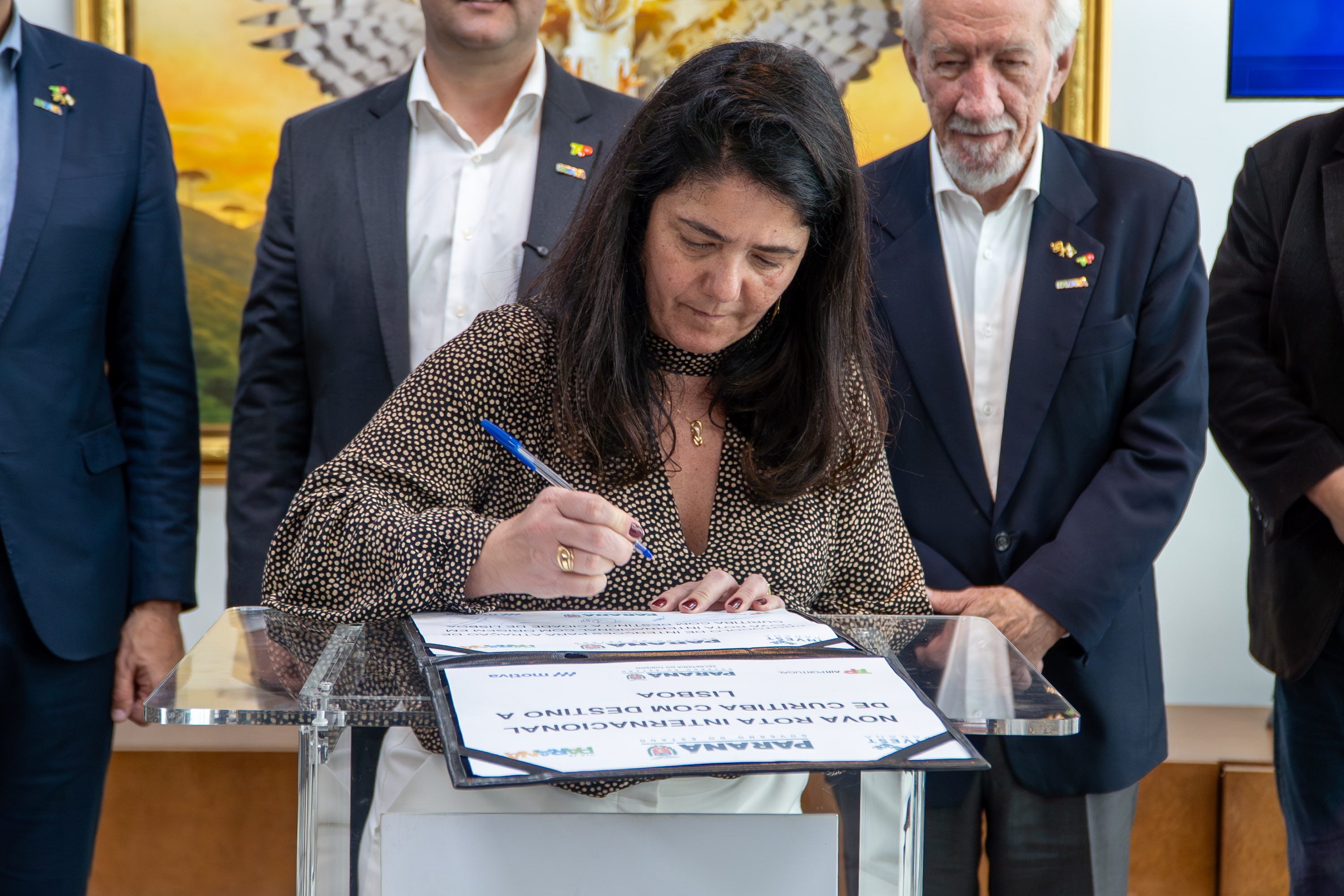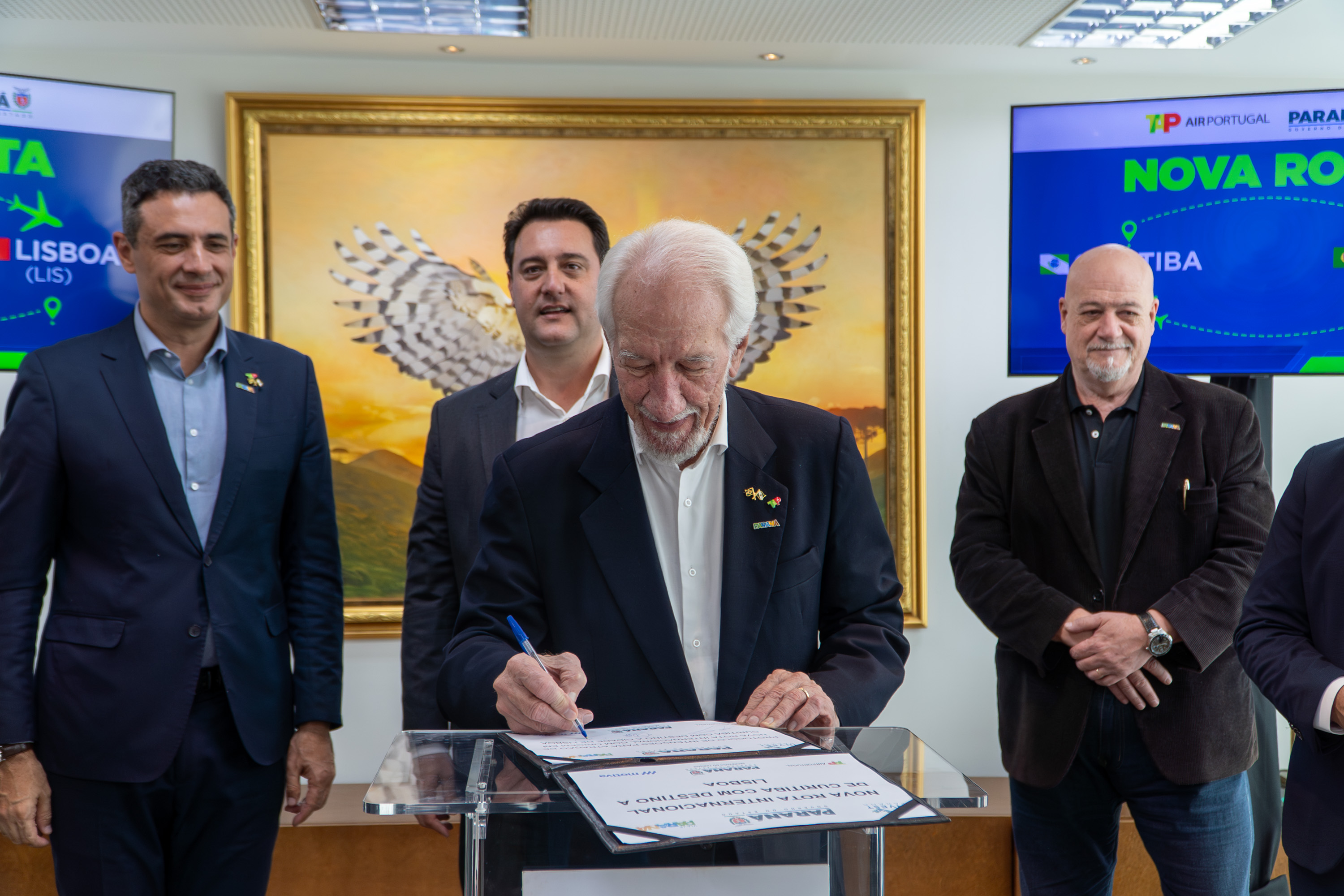DIVULGAÇÃO – Durante o anúncio, também foi assinado um protocolo de cooperação entre o Governo do Paraná – por meio do Viaje Paraná e Invest Paraná –, a concessionária Motiva Aeroportos, responsável pelo Bloco Sul de concessões, e a própria TAP Air Portugal. O objetivo é apoiar a divulgação da nova rota e promover o Paraná como destino turístico e de investimentos na Europa.