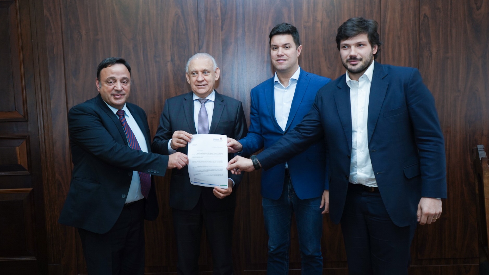 PRESENÇAS – Acompanharam a entrega do projeto de lei na Assembleia Legislativa os deputados estaduais Hussein Bakri, líder do governo, e Tiago Amaral, relator do Orçamento do Paraná.