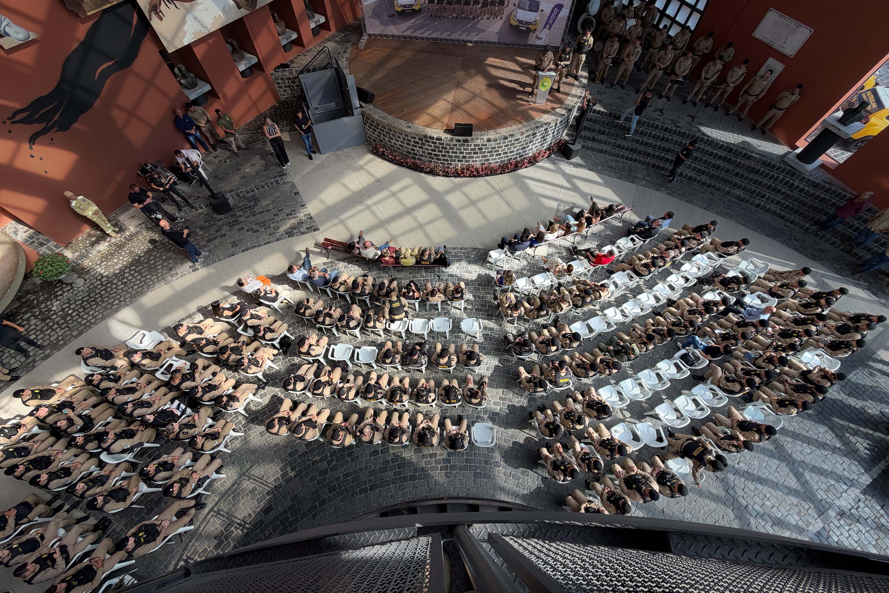 CAPACITAÇÃO — A formatura marcou o encerramento da capacitação realizada entre os dias 25 e 27 de março, no Batalhão de Polícia Escolar Comunitária (BPEC), em Curitiba. O curso teve como foco a padronização do atendimento e o fortalecimento das ações preventivas no enfrentamento à violência doméstica em todo o Paraná. Os policiais participaram de uma formação multidisciplinar, com conteúdos voltados ao estudo de feminicídios, atuação da Defensoria Pública, estratégias de acolhimento às vítimas e enfrentamento da violência contra crianças, adolescentes e idosos. Também foram abordadas ferramentas operacionais, como o monitoramento de agressores, uso de tornozeleiras eletrônicas e padronização de ações preventivas.