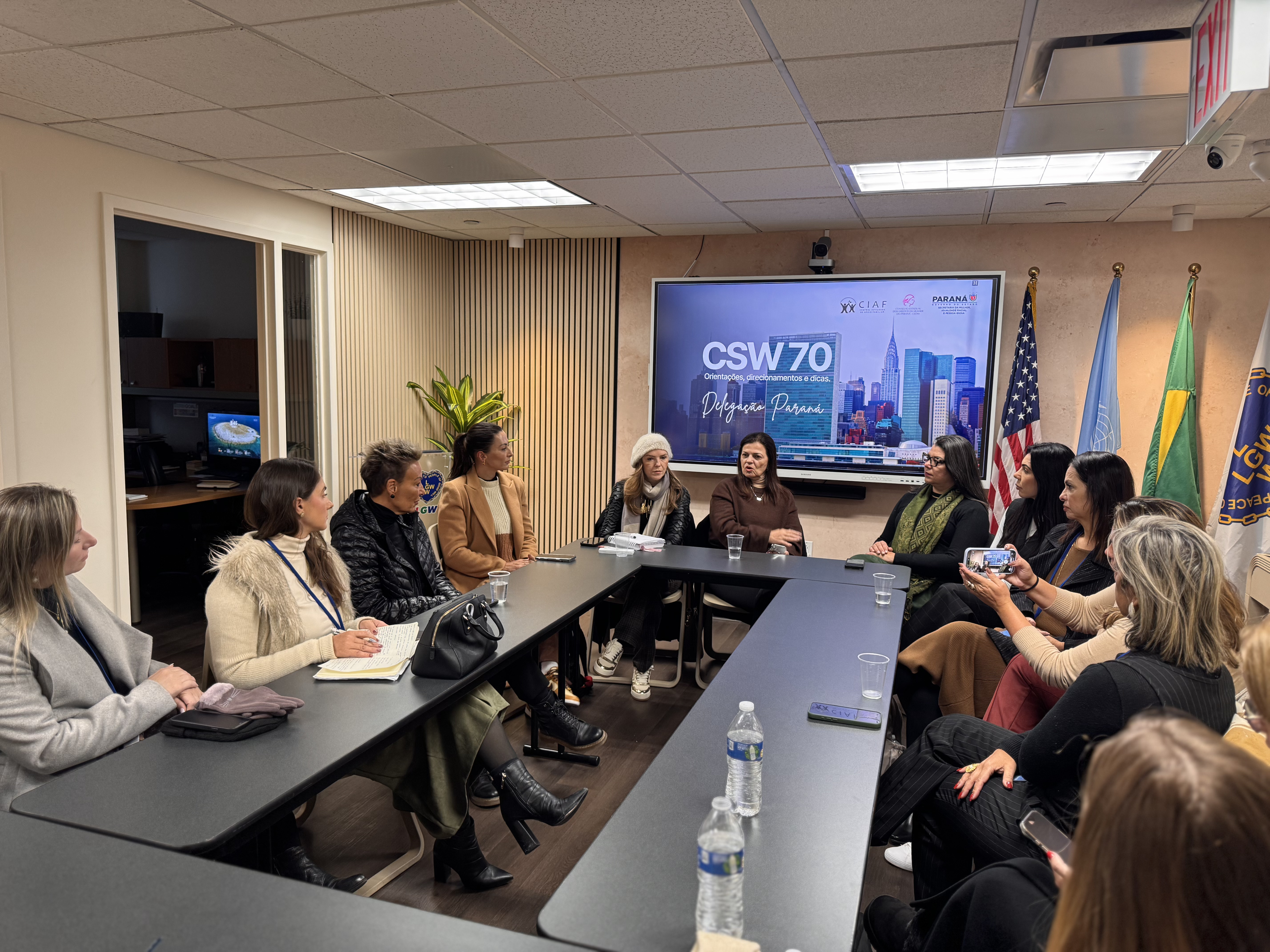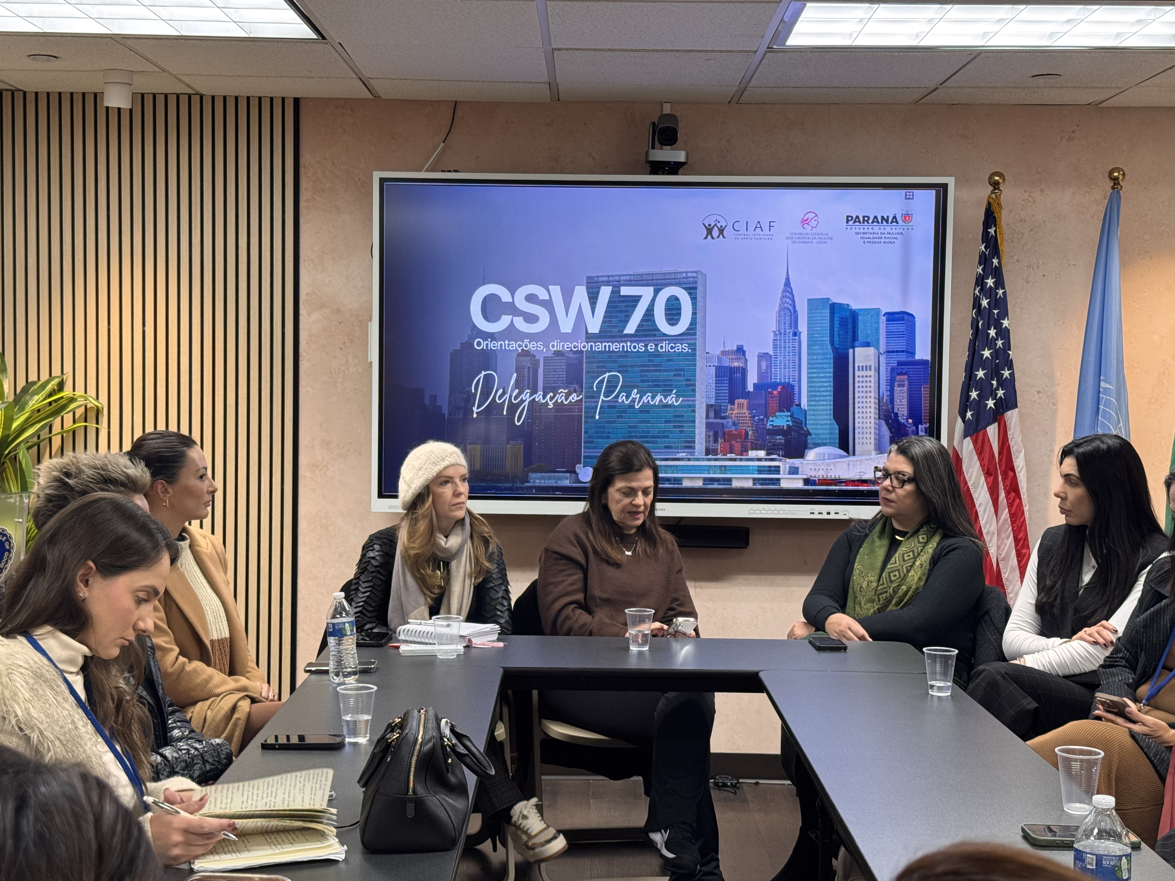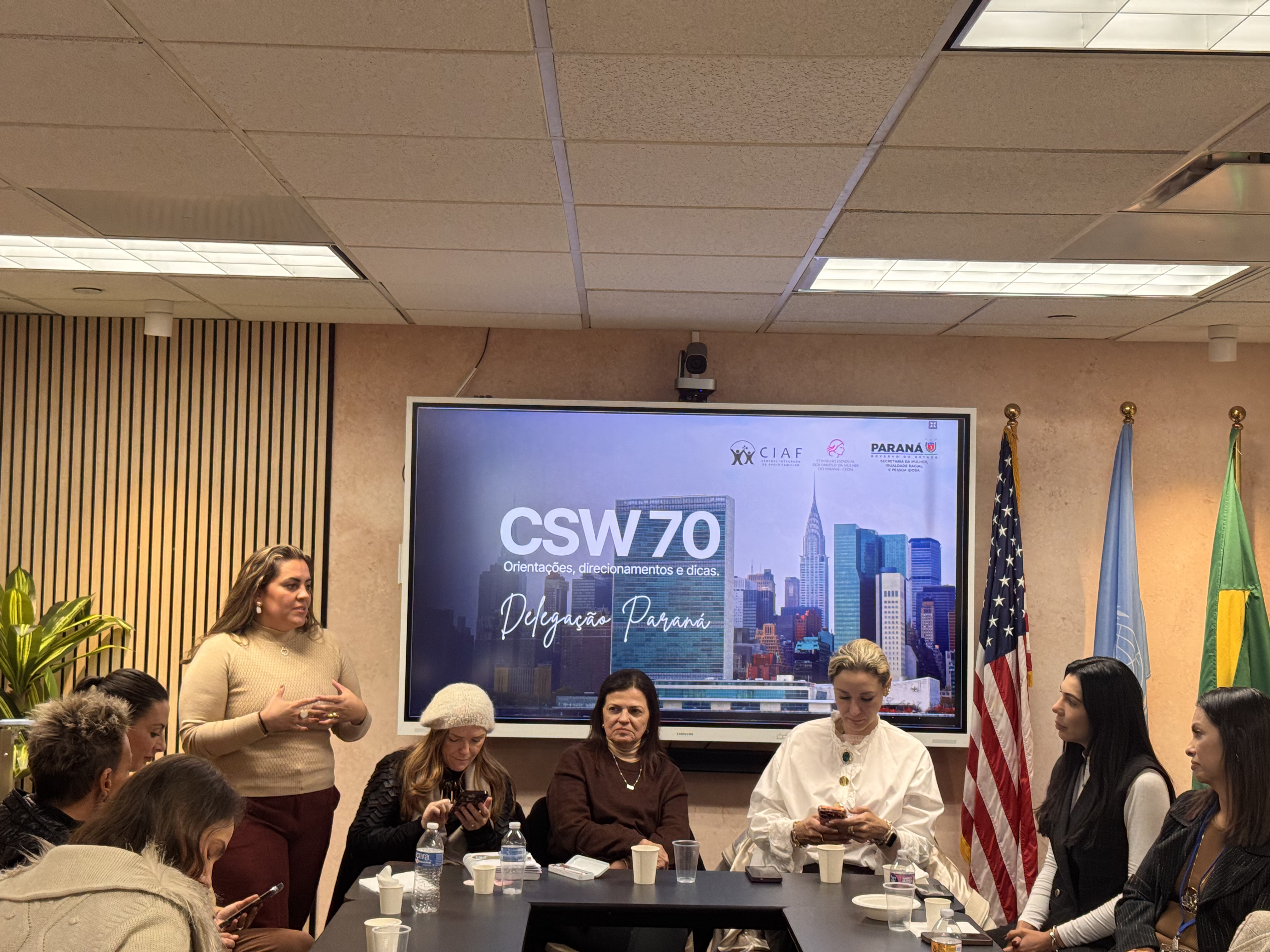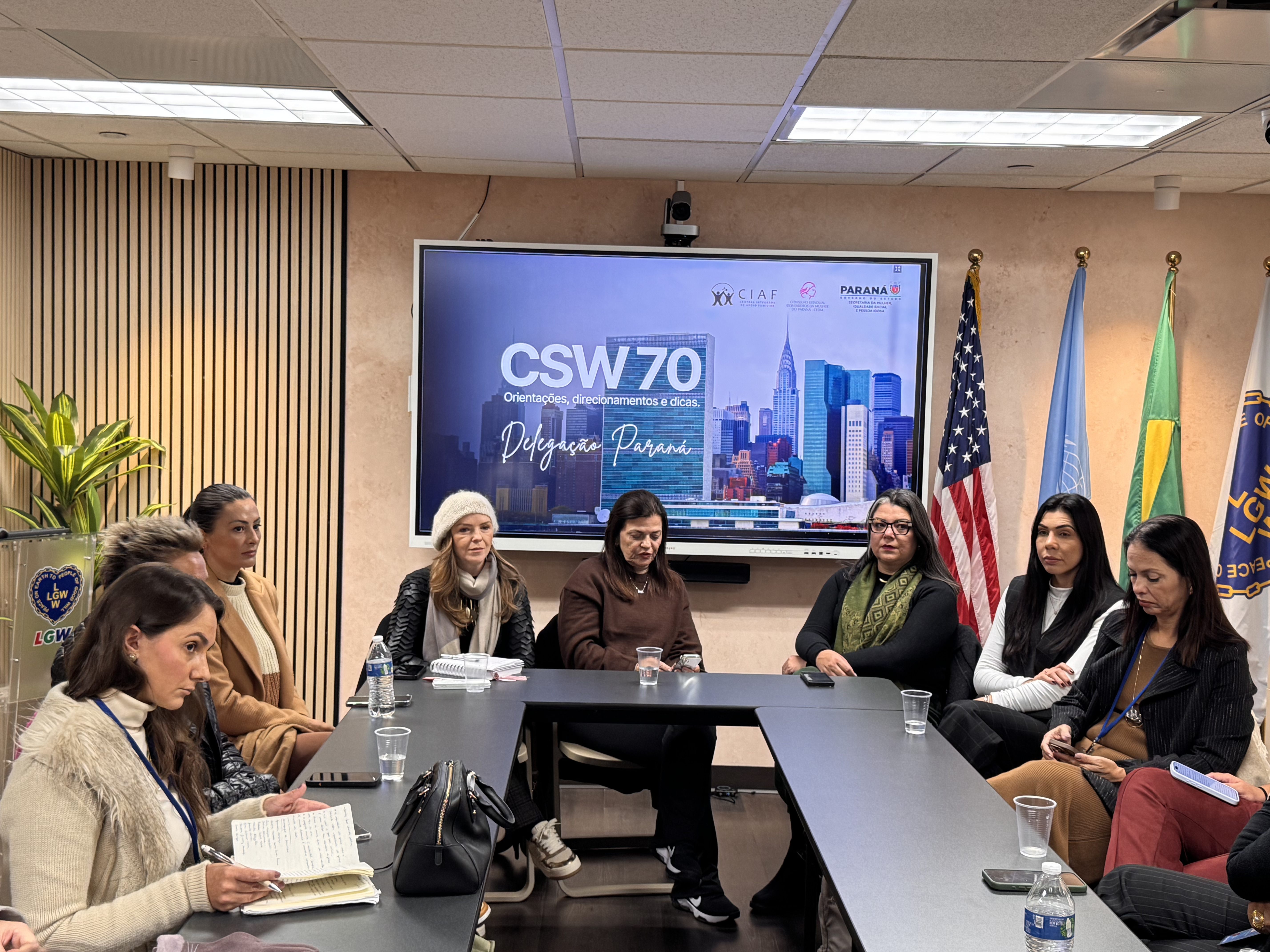 Debates e agendas institucionais - A programação da delegação paranaense também incluiu a participação no painel “Brazil Talks – Columbia NYC: Acesso à Justiça para Mulheres”, realizado na Universidade de Columbia, além do encontro “Celebração e Conquistas da Mulher Brasileira”, promovido no Consulado-Geral do Brasil em Nova York.