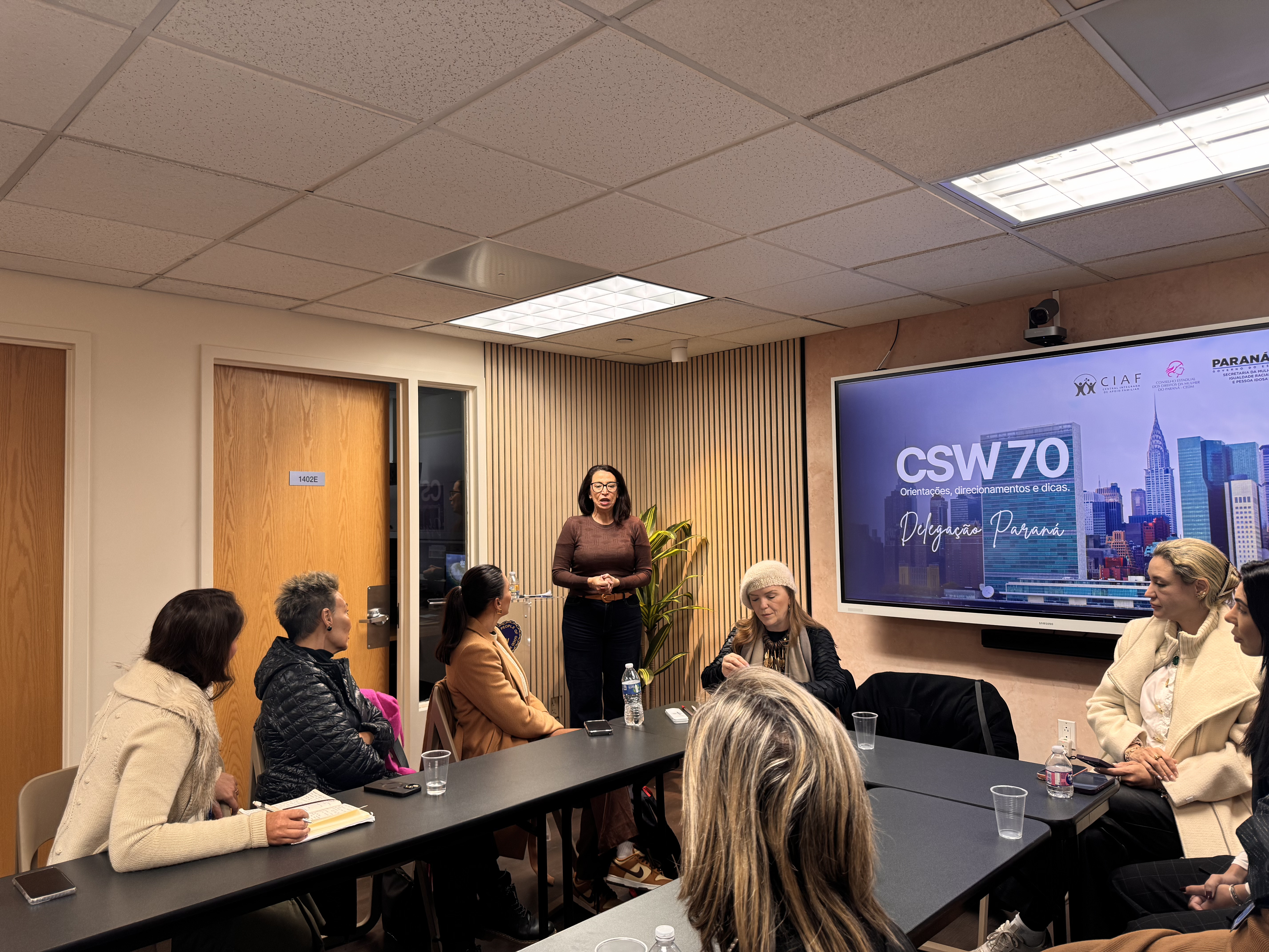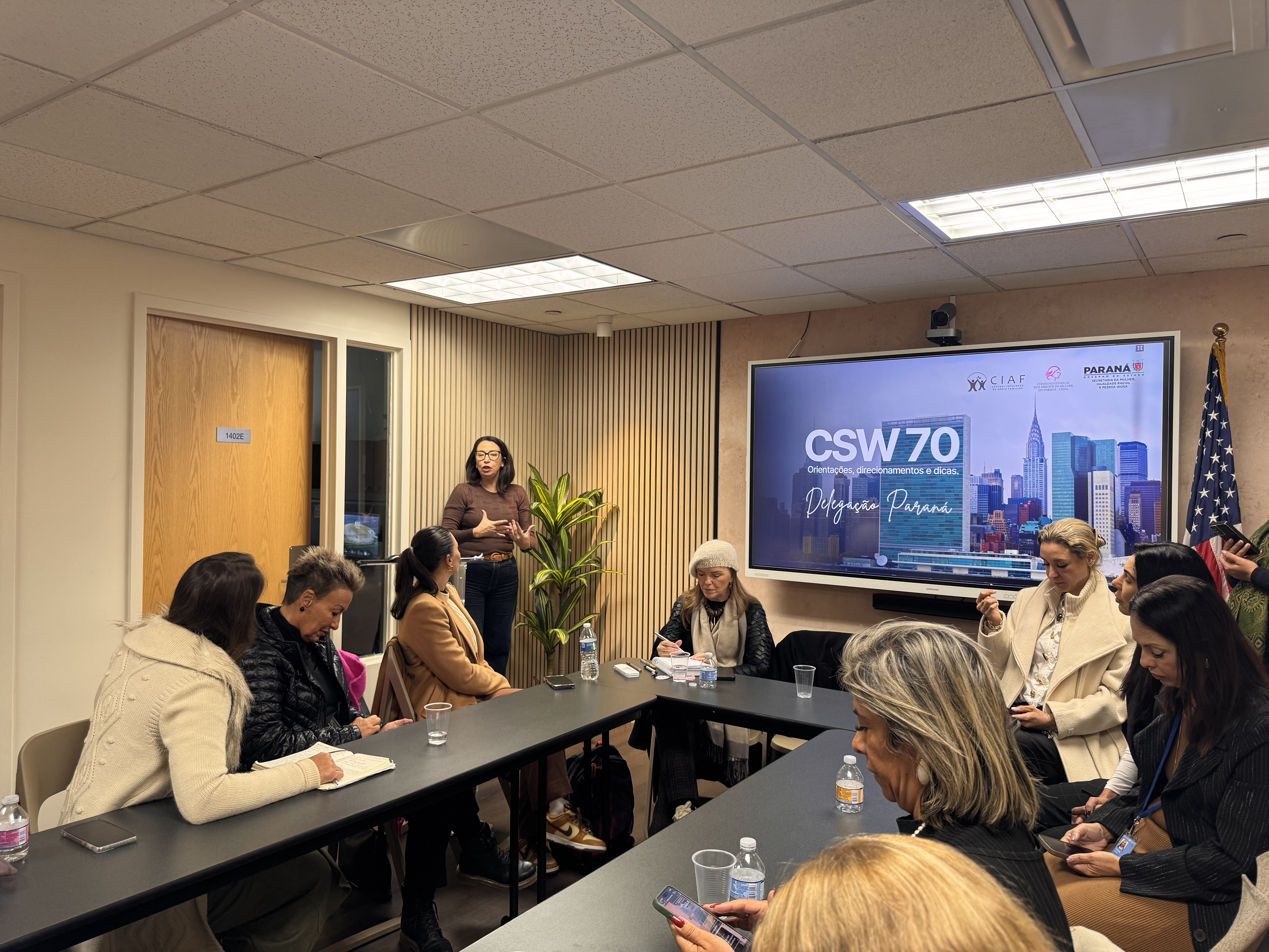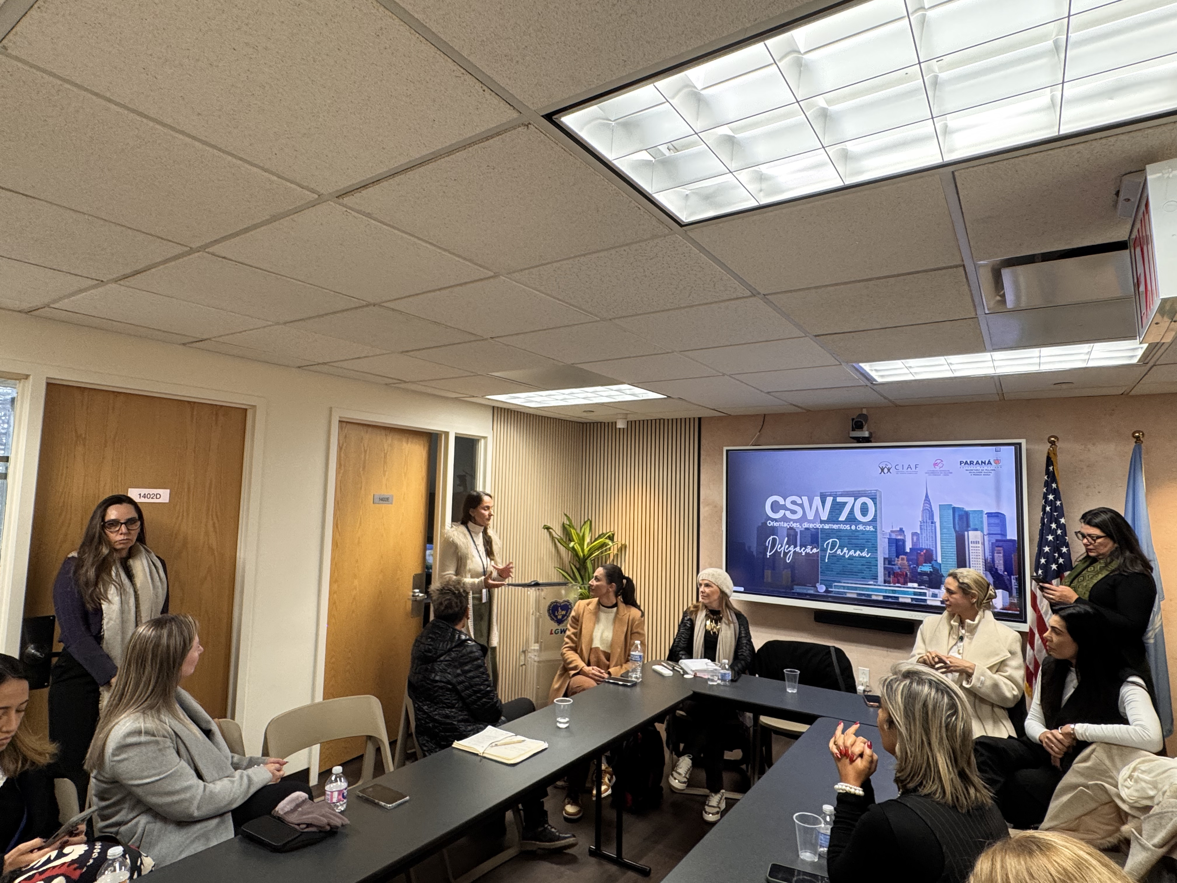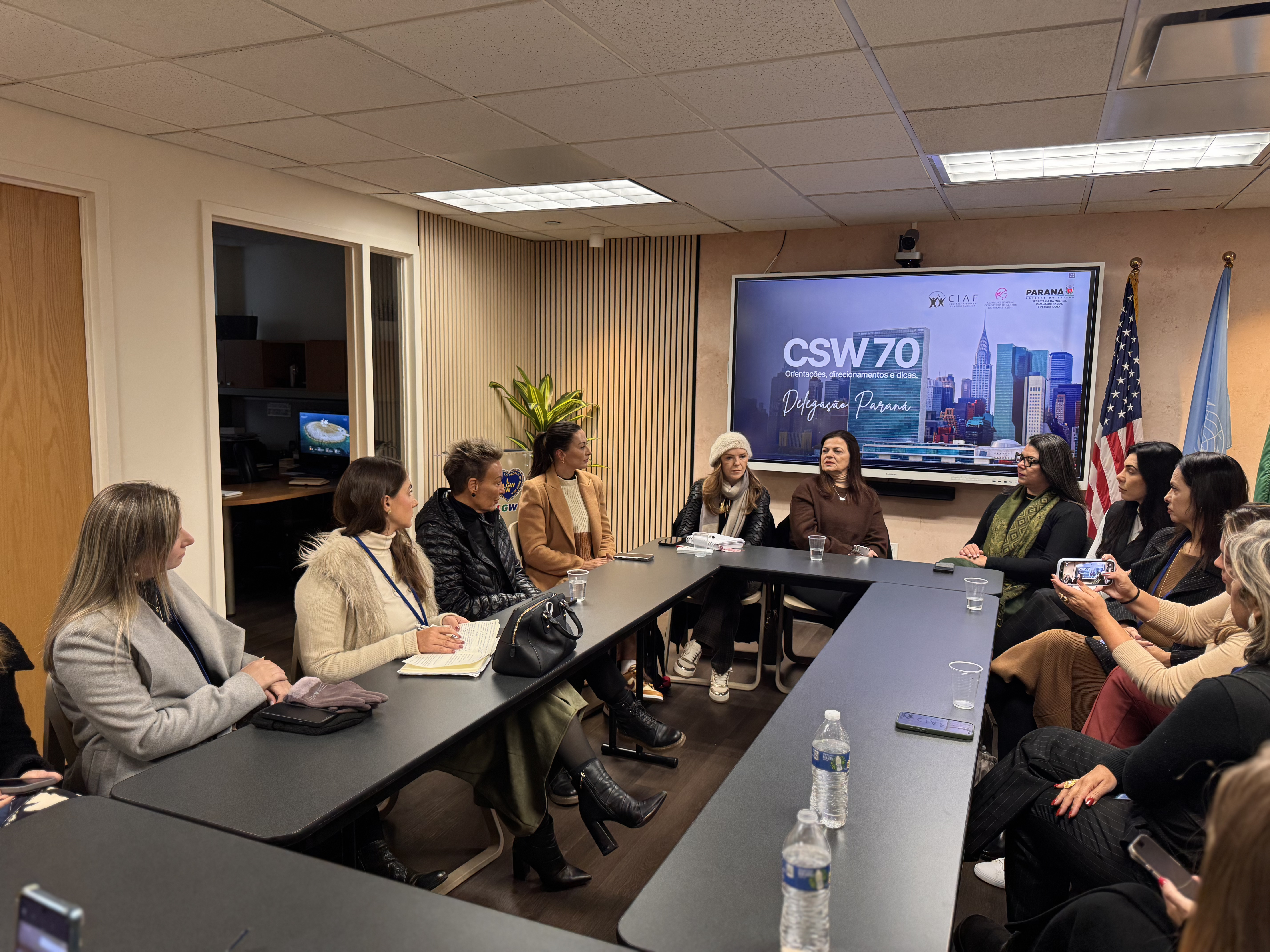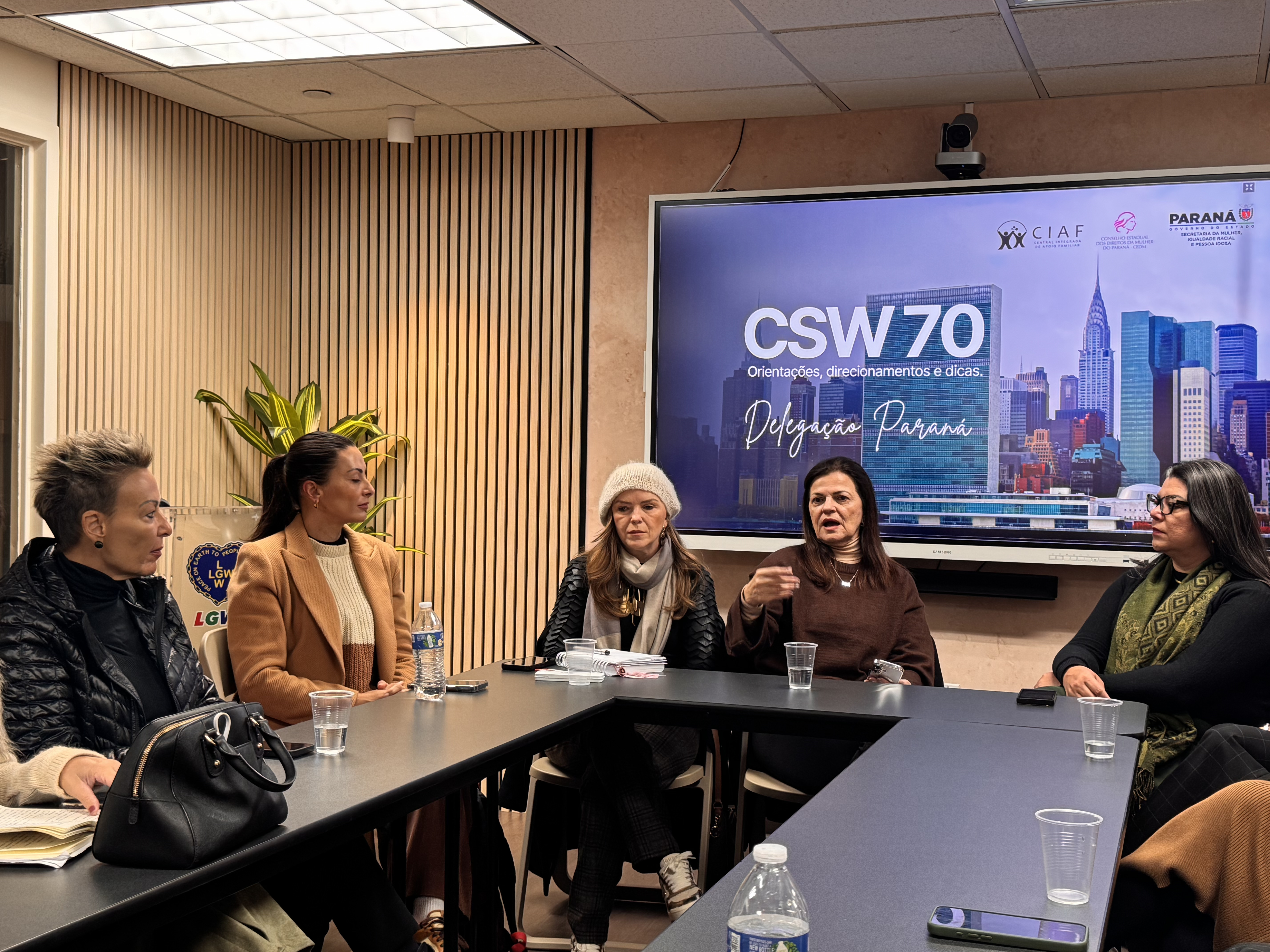 Debates e agendas institucionais - A programação da delegação paranaense também incluiu a participação no painel “Brazil Talks – Columbia NYC: Acesso à Justiça para Mulheres”, realizado na Universidade de Columbia, além do encontro “Celebração e Conquistas da Mulher Brasileira”, promovido no Consulado-Geral do Brasil em Nova York.