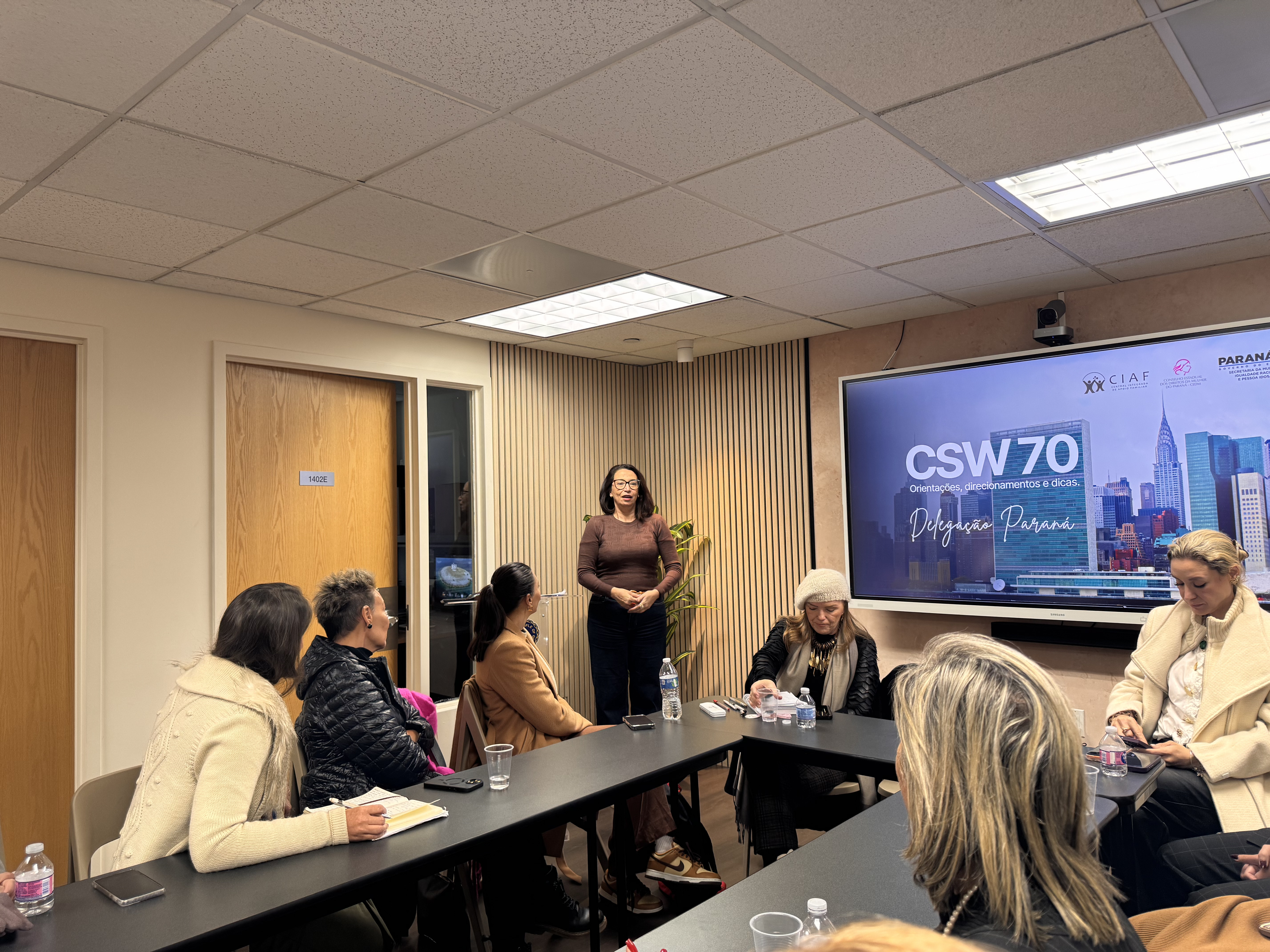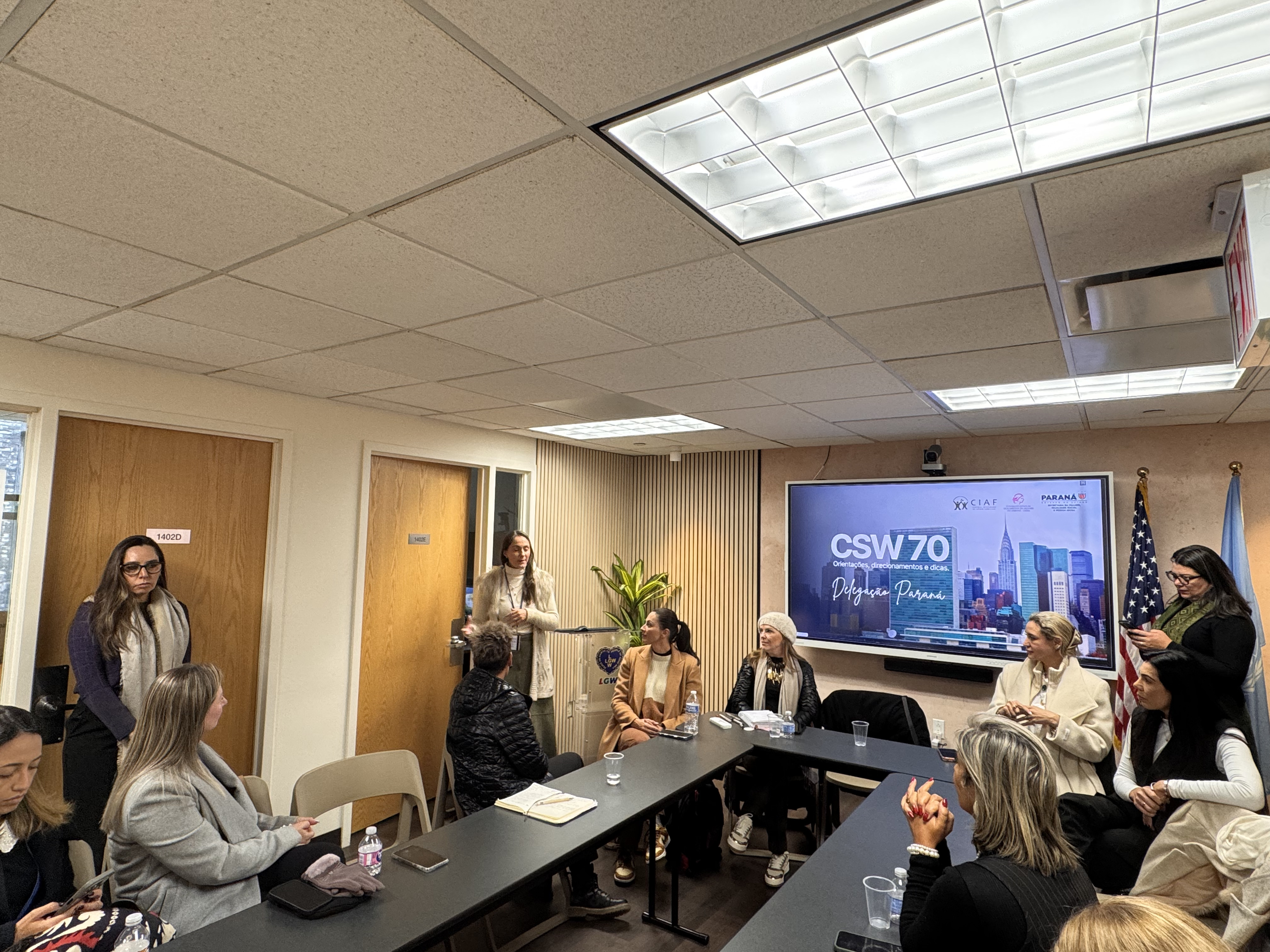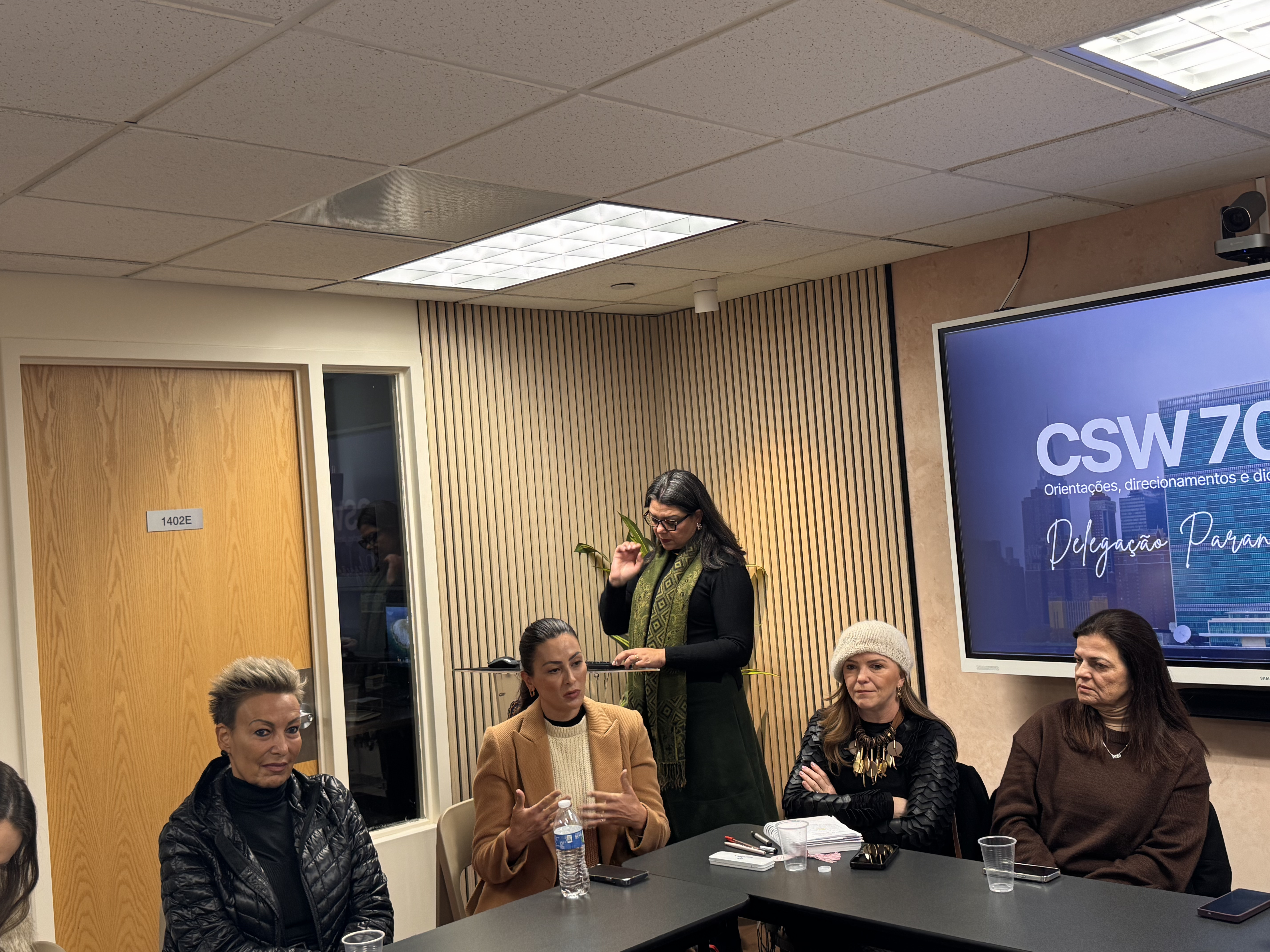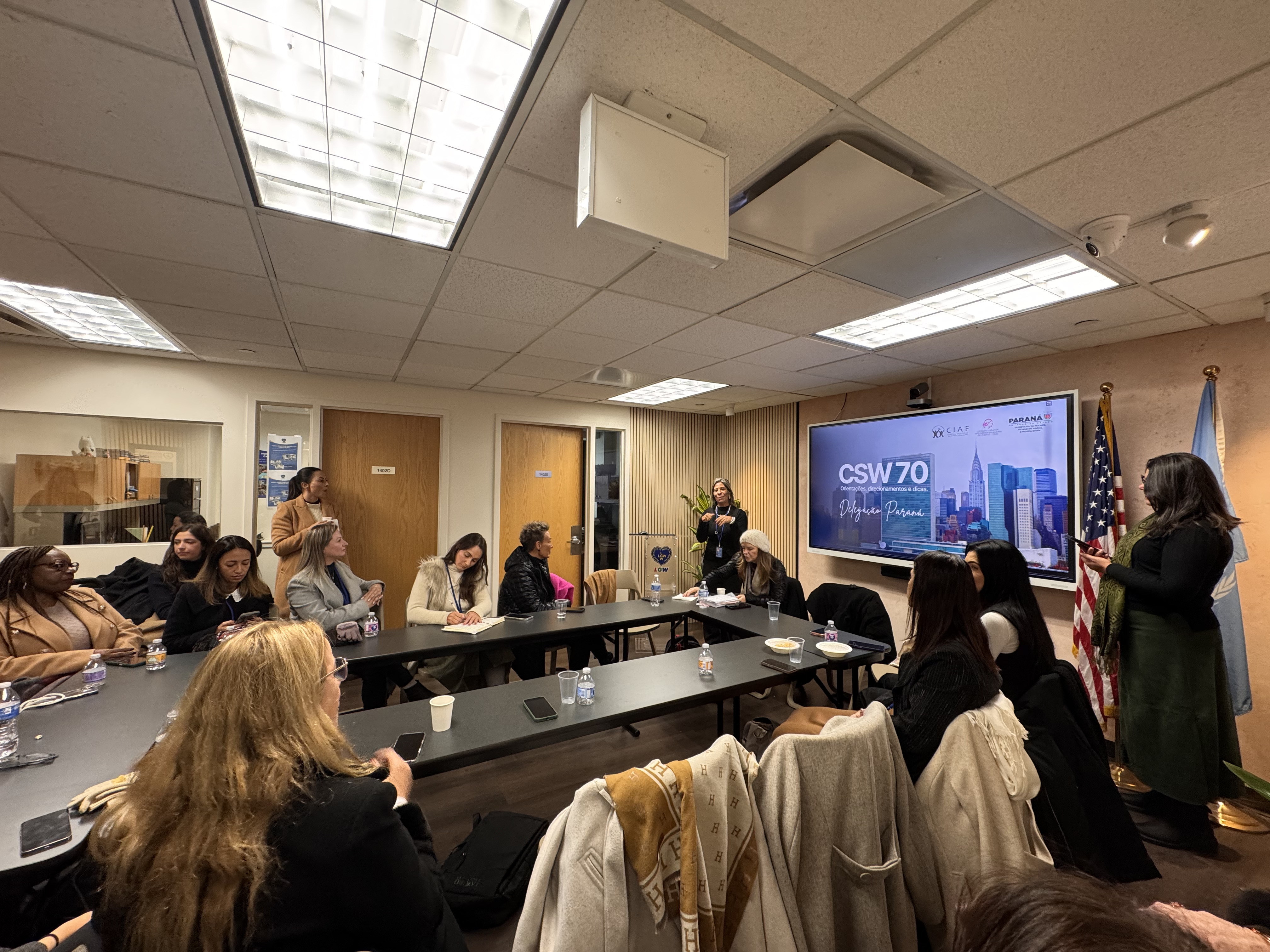 Debates e agendas institucionais - A programação da delegação paranaense também incluiu a participação no painel “Brazil Talks – Columbia NYC: Acesso à Justiça para Mulheres”, realizado na Universidade de Columbia, além do encontro “Celebração e Conquistas da Mulher Brasileira”, promovido no Consulado-Geral do Brasil em Nova York.