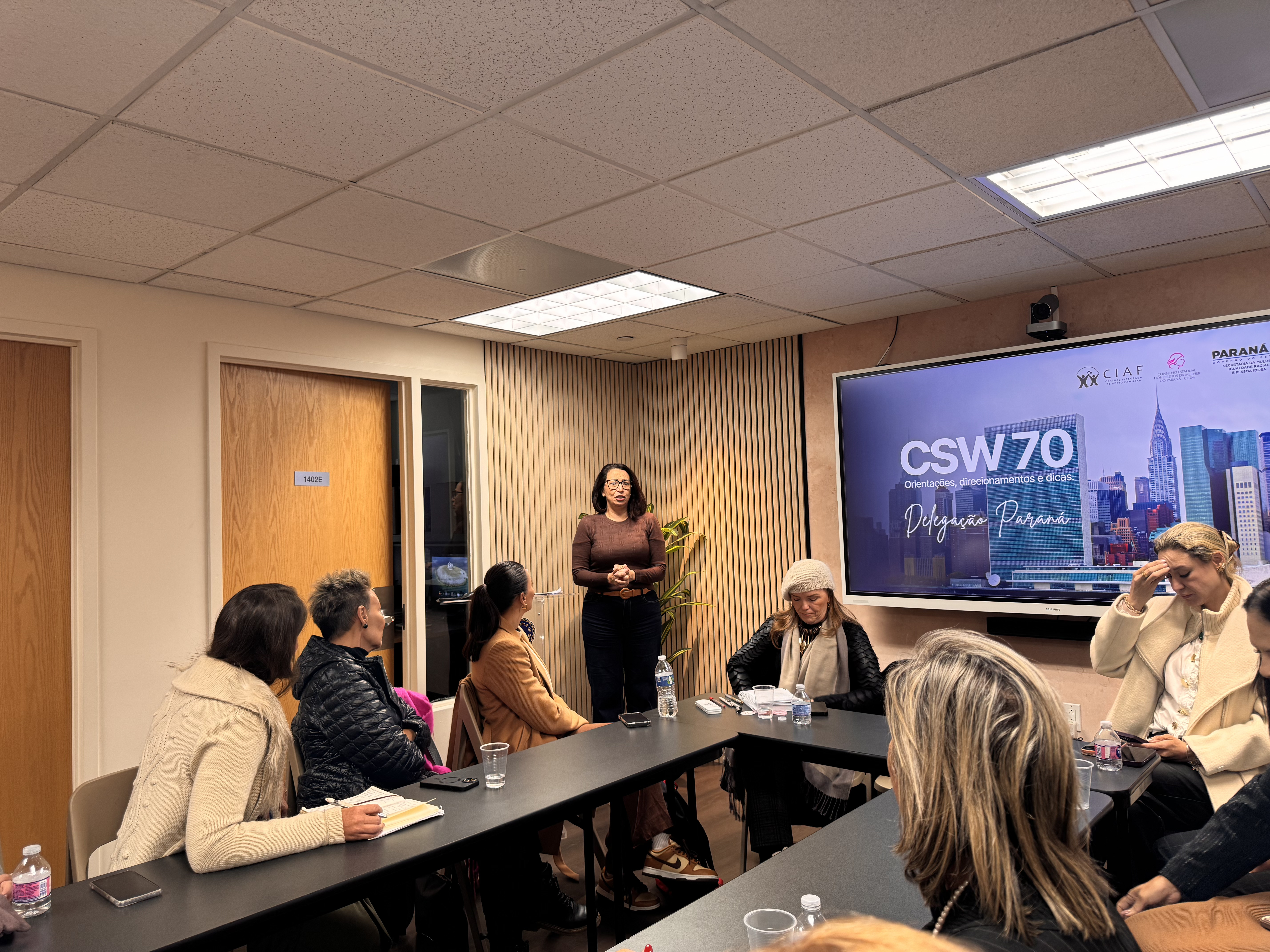 Um dos destaques da comitiva é Tânia de Castro Ribeiro, representante da Central Integrada de Apoio Familiar (CIAF) e conselheira do Conselho Estadual dos Direitos da Mulher (CEDM/PR). Tânia tem se destacado pelo trabalho incansável e pela contribuição significativa ao longo de toda a programação na ONU, fortalecendo a articulação entre a sociedade civil e o Governo do Estado do Paraná. Sua atuação tem sido fundamental para ampliar o diálogo internacional e apresentar experiências e iniciativas que promovem a proteção e o protagonismo das mulheres.