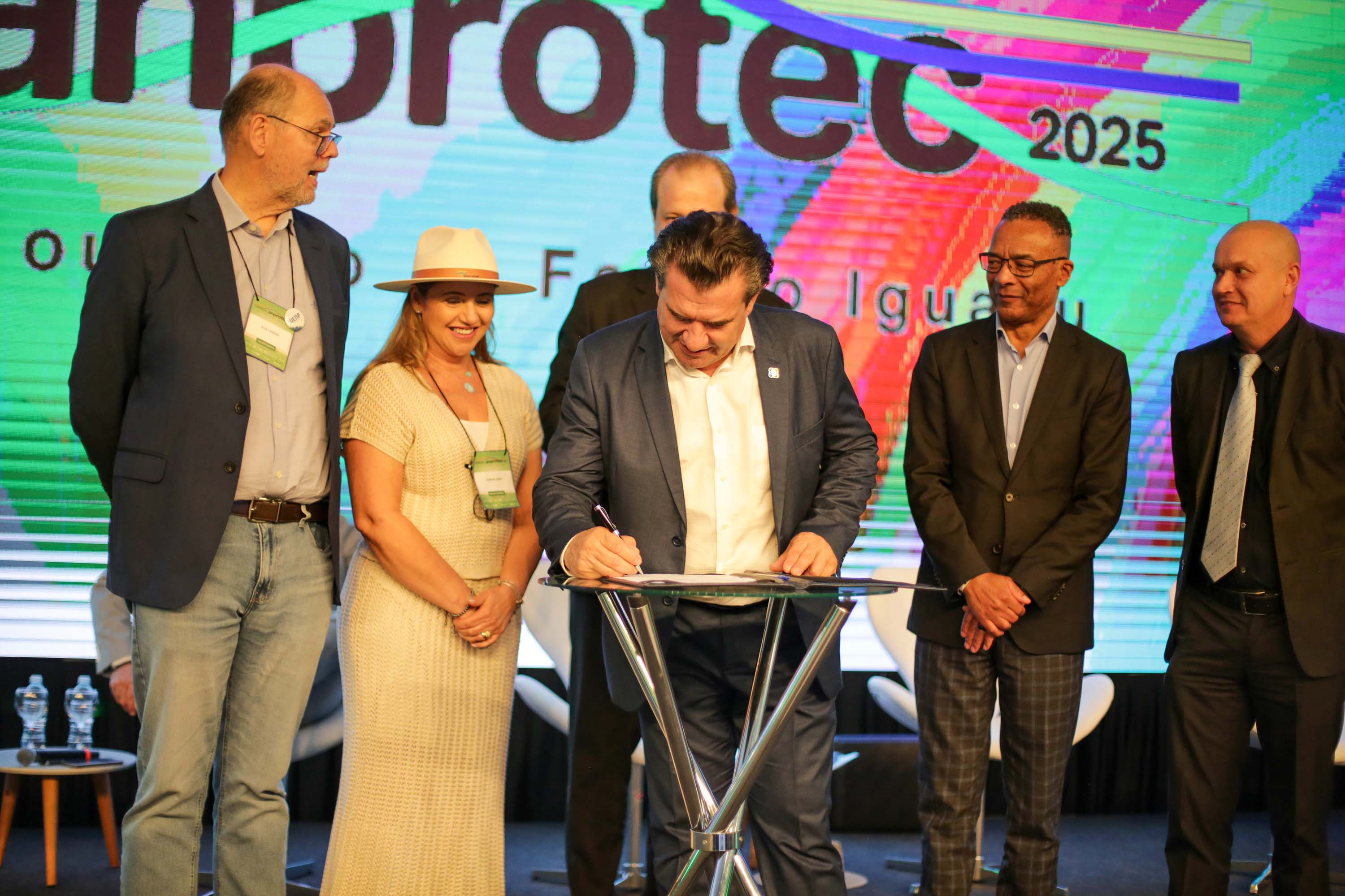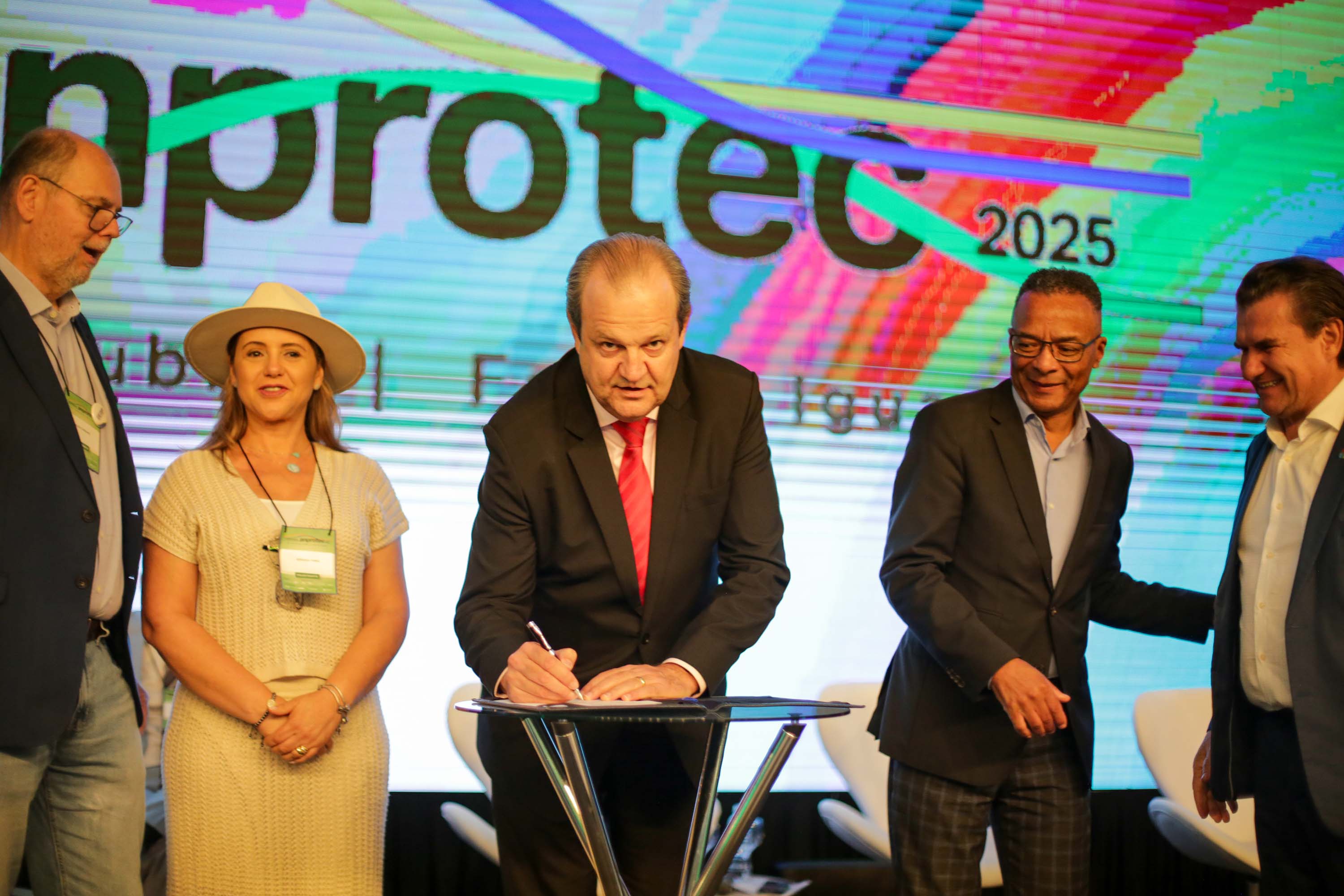 O Governo do Paraná anunciou nesta segunda-feira (13) a destinação de R$ 30 milhões para uma nova chamada pública voltada à execução do plano de ação do Sistema de Ambientes Promotores de Inovação (Separtec) 2025/2026. O documento que autoriza a elaboração do edital foi assinado durante a abertura da 35ª Conferência da Associação Nacional de Entidades Promotoras de Empreendimentos Inovadores (Anprotec), em Foz do Iguaçu, no Oeste do Paraná. A expectativa é que o edital seja publicado até o início do próximo ano.