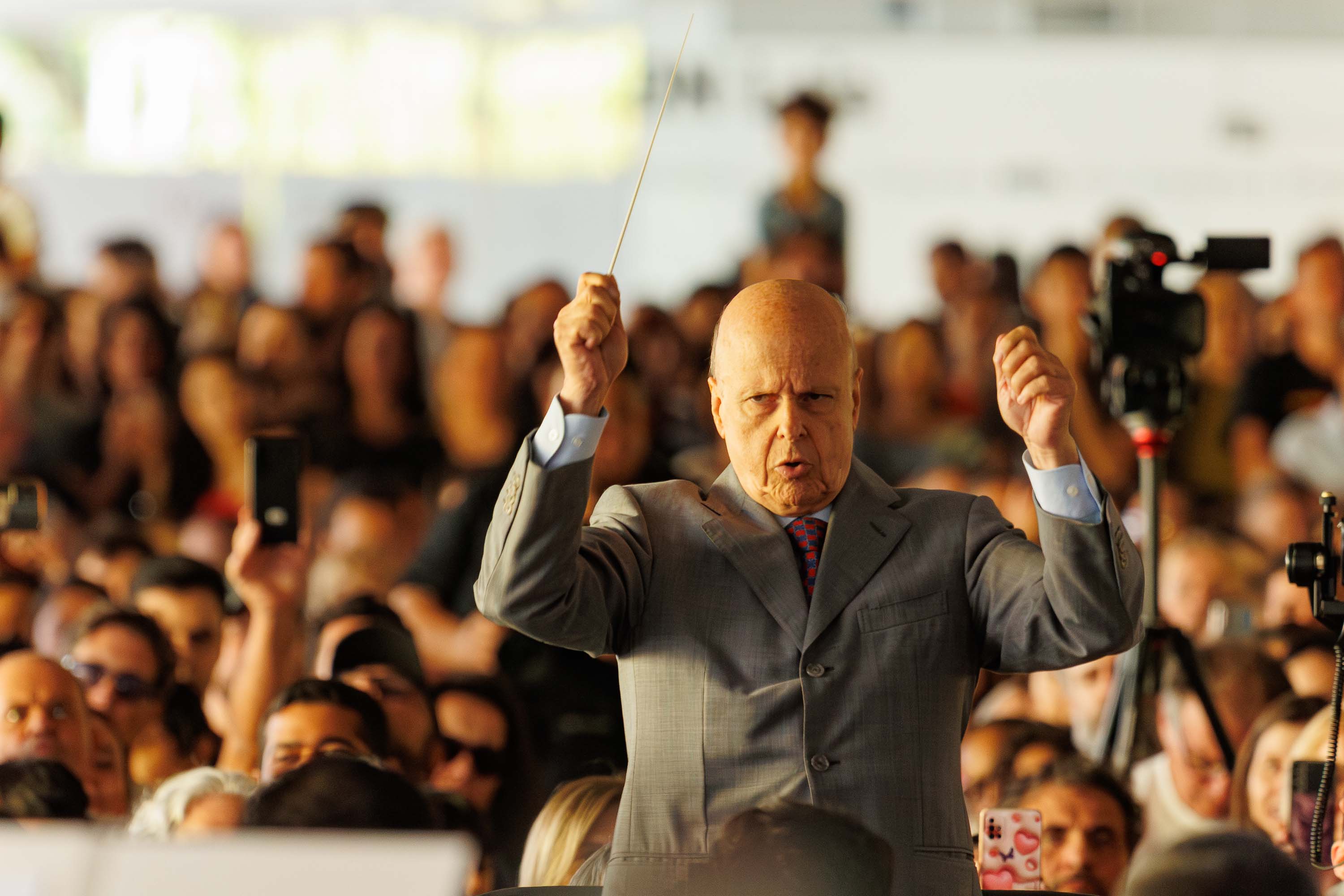 “Nós estamos no segundo ano, tocando o essencial de Mozart e, neste sábado, também trazendo Beethoven para um público que lotou o MON. Estou muito feliz com esse público tão carinhoso e com esse concerto que foi maravilhoso”, disse o maestro titular e diretor musical da Orquestra Sinfônica do Paraná, Roberto Tibiriça. Ele conduziu o concerto trazendo duas obras icônicas do repertório clássico: a abertura da ópera A Flauta Mágica, de Wolfgang Amadeus Mozart, e a célebre Sinfonia nº 5, de Ludwig van Beethoven.