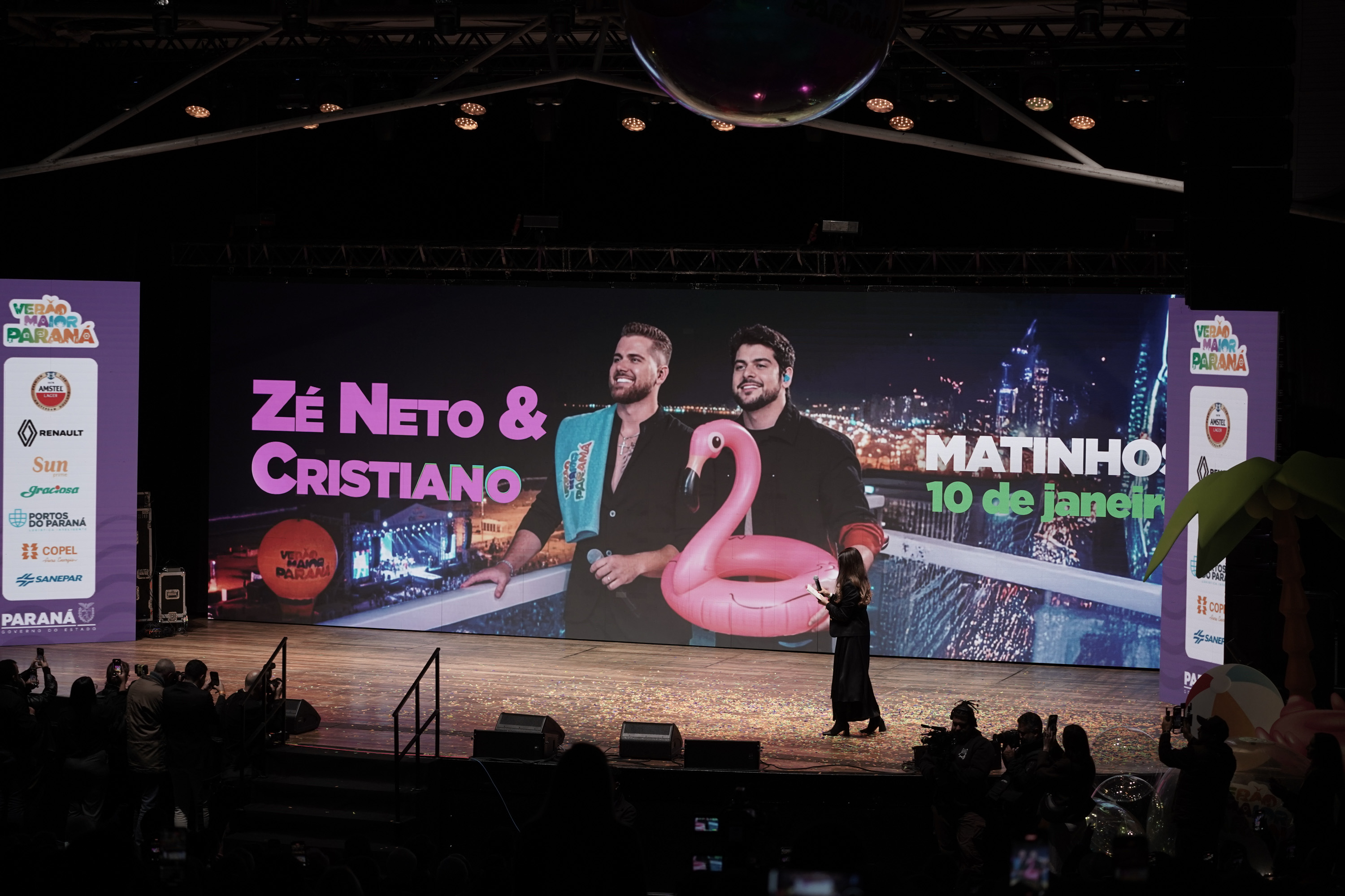 O Governo do Paraná anunciou nesta terça-feira (21) os nomes das atrações do Verão Maior Paraná 2026. São cinco finais de semana seguidos de espetáculos gratuitos, de 9 de janeiro a 8 de fevereiro. Entre as novidades estão shows nas quintas-feiras, atrações internacionais e palcos que devem ser maiores do que no ano passado. Os shows acontecerão nas praias de Matinhos e Pontal do Paraná e terão transmissão do SBT, Band, TVCI, Banda B e TV Paraná Turismo para todo o Brasil.