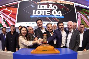 10:44 Notícias Com desconto de 21,3% sobre tarifa, EPR arremata Lote 4 e investirá R$ 18 bilhões no Paraná Governador Carlos Massa Ratinho Junior participou do leilão nesta quinta-feira (23) na Bolsa de Valores de São Paulo (B3). EPR apresentou o maior desconto entre os participantes: 21,30% sobre a tarifa básica de pedágio, fixada em R$ 0,1678 por quilômetro. Grupo já administra os Lotes 2 e 6 das concessões paranaenses. Compartilhe: