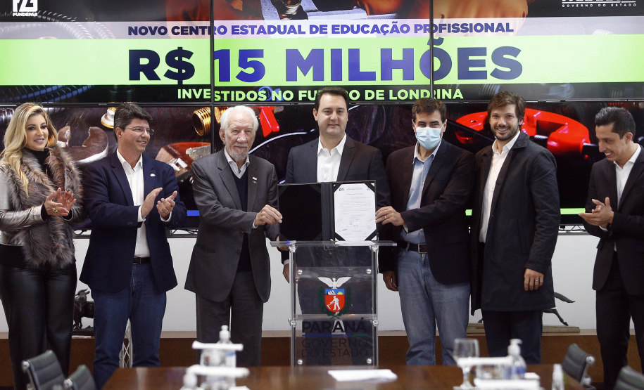 Ratinho Junior também assinou a ordem de serviço para a conclusão das obras do Centro Estadual de Educação Profissional (CEEP) de Londrina, para fortalecer o ensino técnico na região. Ele entregou, ainda, o certificado que garante a descentralização da gestão ambiental, que pode ser feita de forma autônoma pelo município.