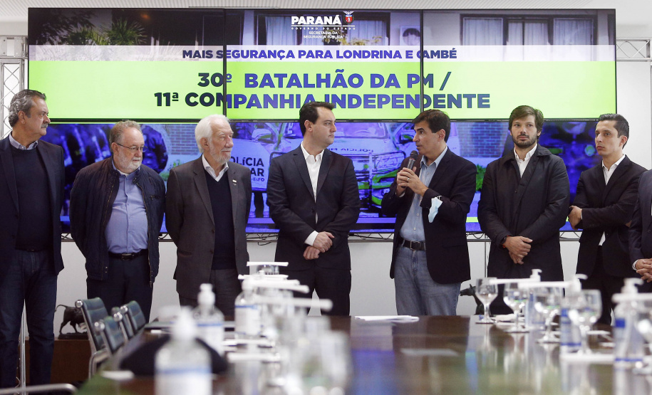 “Recebemos investimentos históricos em Londrina. Com o novo batalhão, Londrina deve receber mais 300 policiais, equipamentos e viaturas. Vai melhorar muito a questão da segurança da cidade e da região”, afirmou o prefeito Marcelo Belinati.